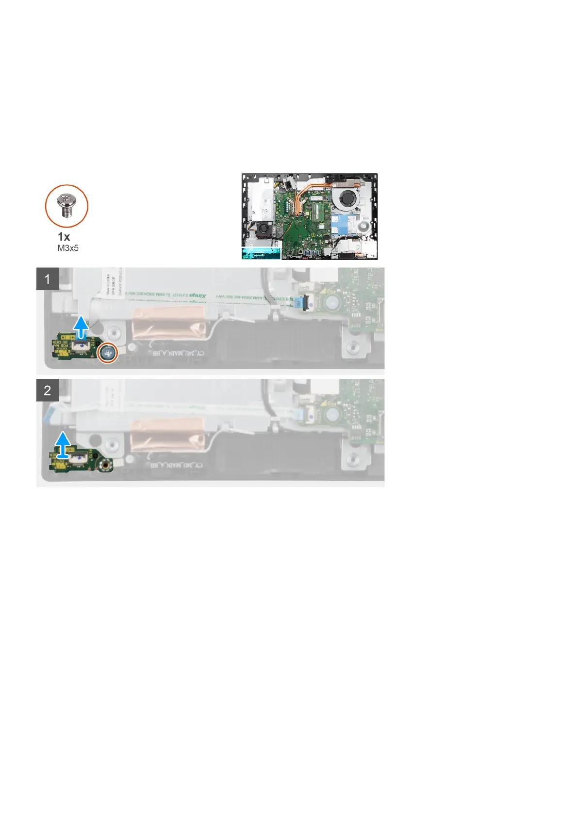 2. Remove the screw (M3x5) that secures the power-button board to the middle frame.