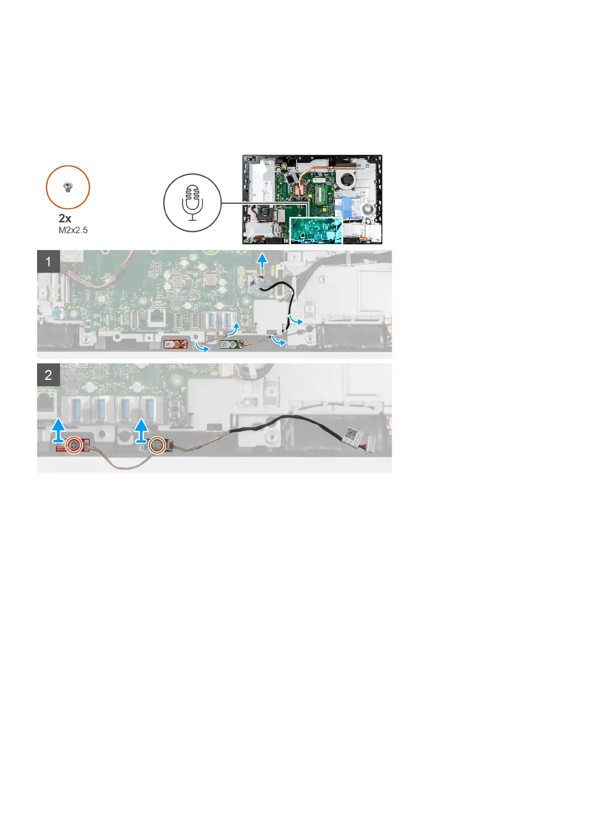 2. Remove the two screws (M2x2.5) that secure the microphone modules to the middle frame.