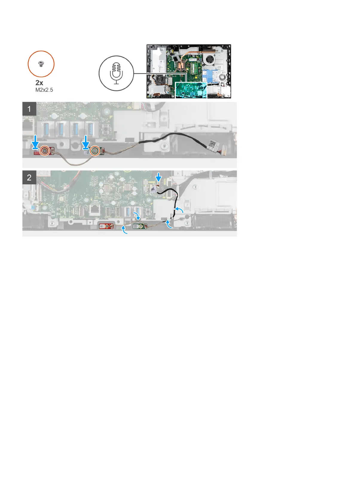 2. Replace the two screws (M2X2.5) to secure the microphone modules to the middle frame.