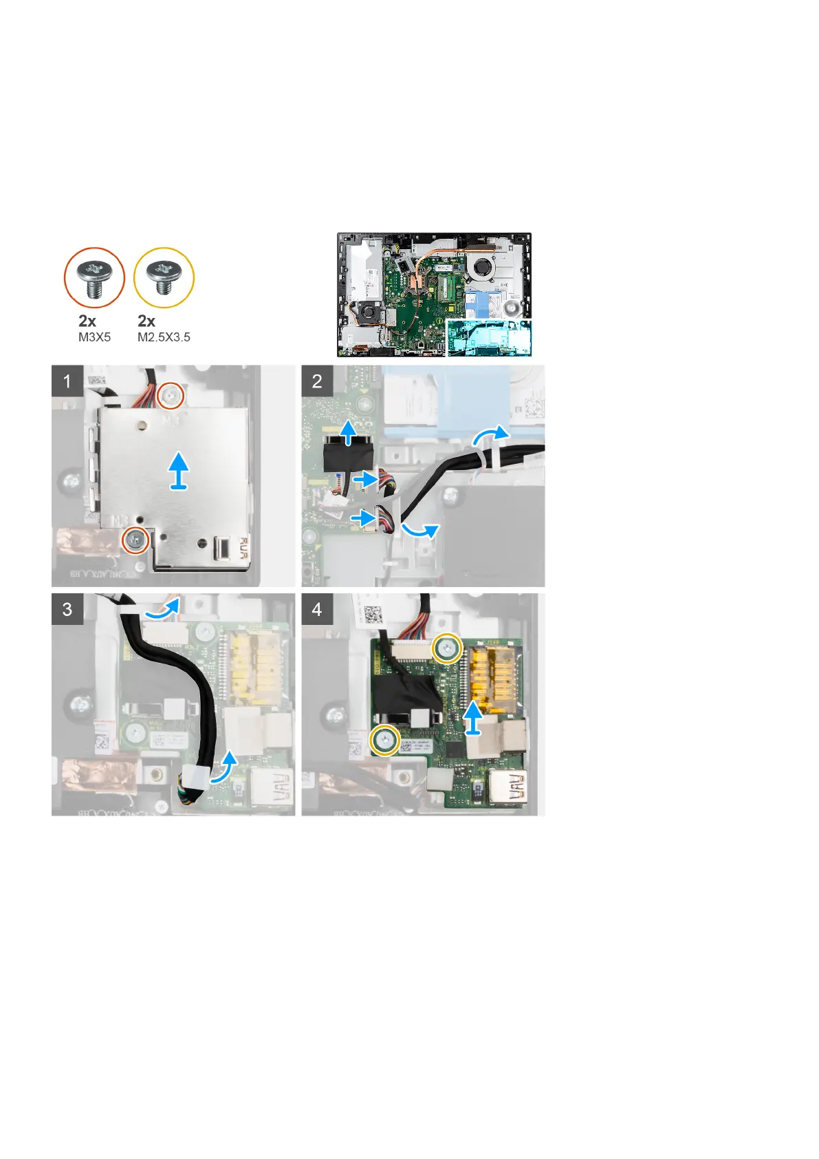 5. Remove the two screws (M2.5x3.5) that secure the side I/O-board to the display-assembly base.