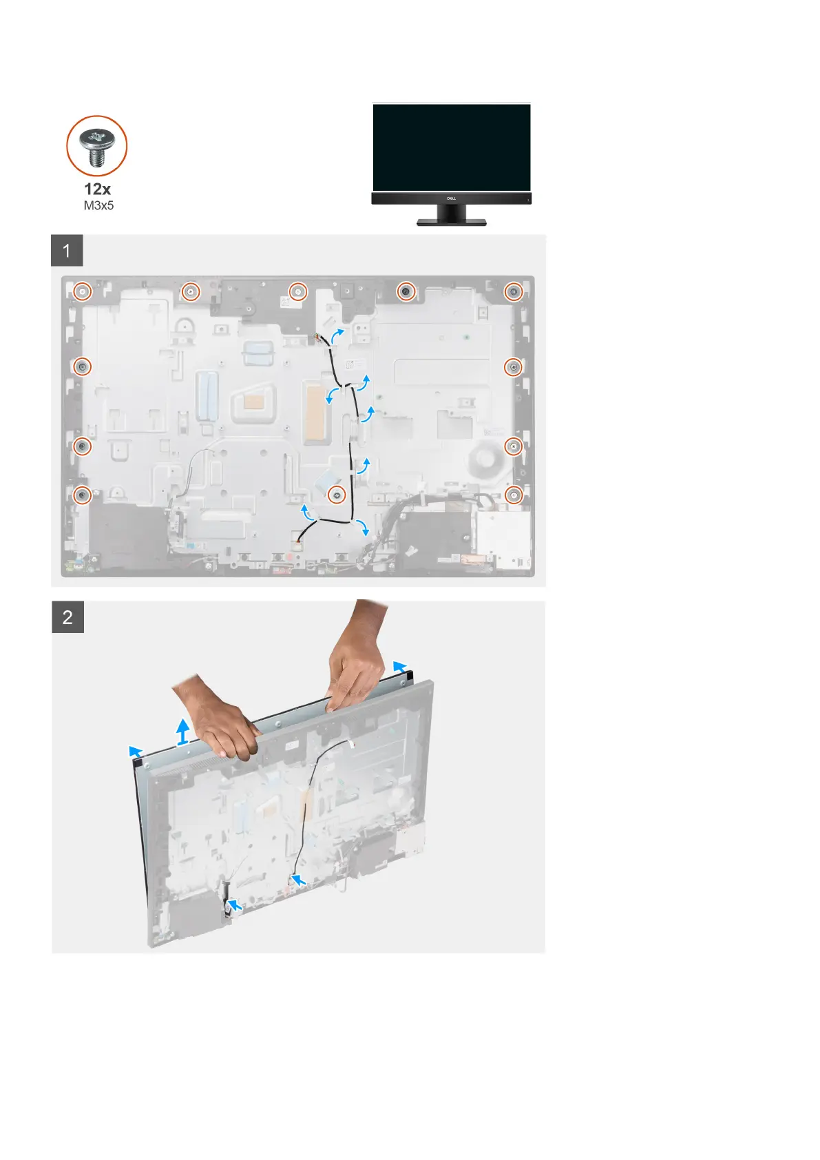 1. Remove the 12 screws (M3x5) that secure the display panel to the middle frame and display-assembly base.
