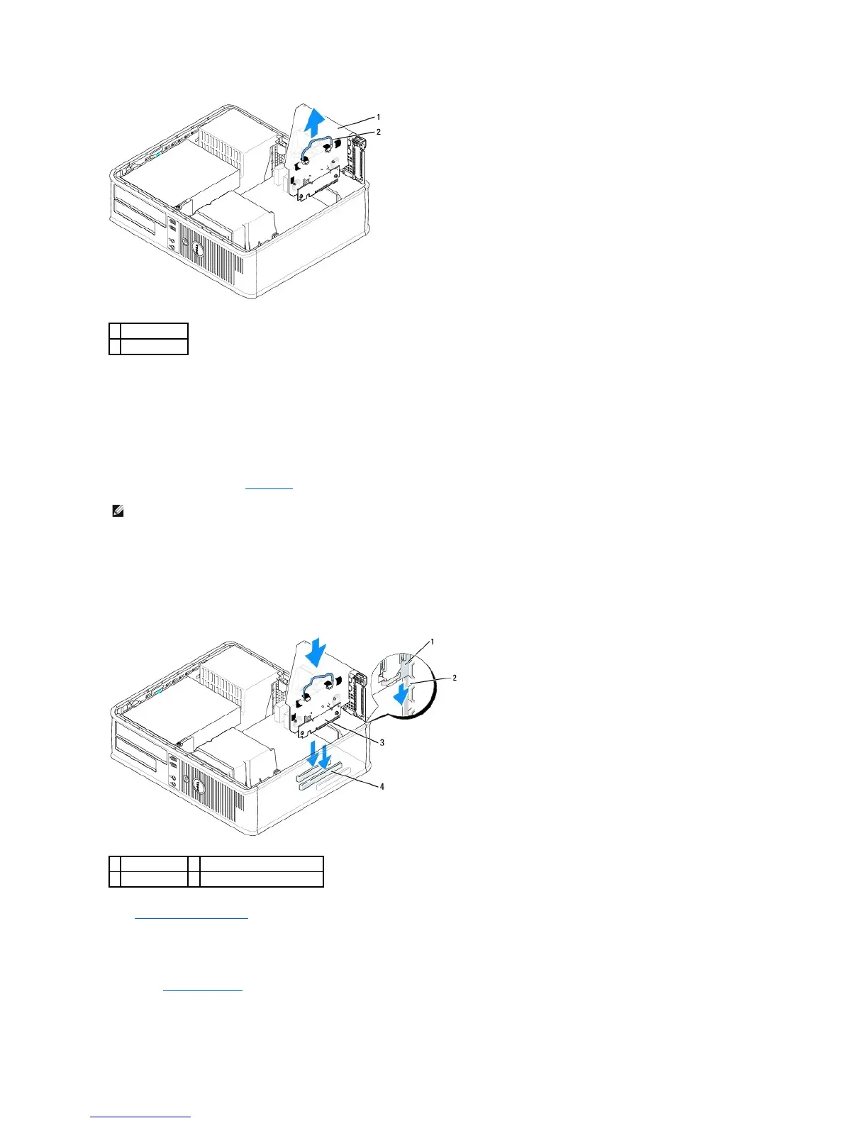 a. Align the tabs in the side of the riser-card cage with the slots on the side of the computer, and slide the riser-card cage down into place.