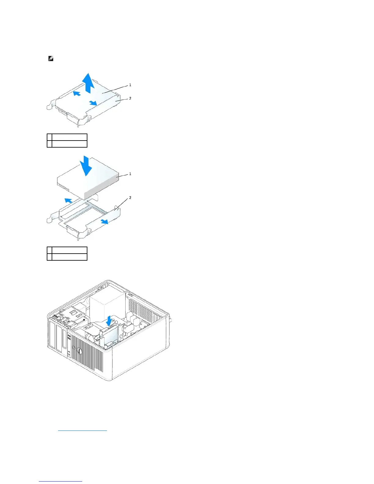 5. Connect the power and hard-drive cables to the drive. Connect the hard-drive cable to the connector on the system board.