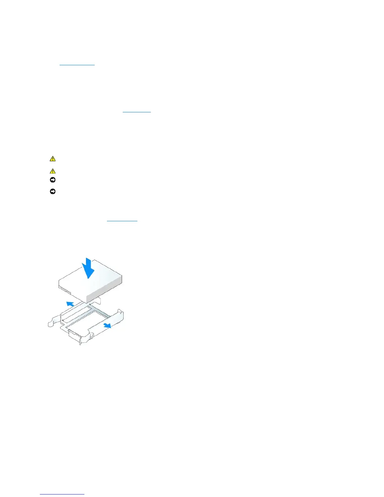 4. Gently spread the sides of the drive bracket and slide the hard drive into the bracket until the drive clicks into place.