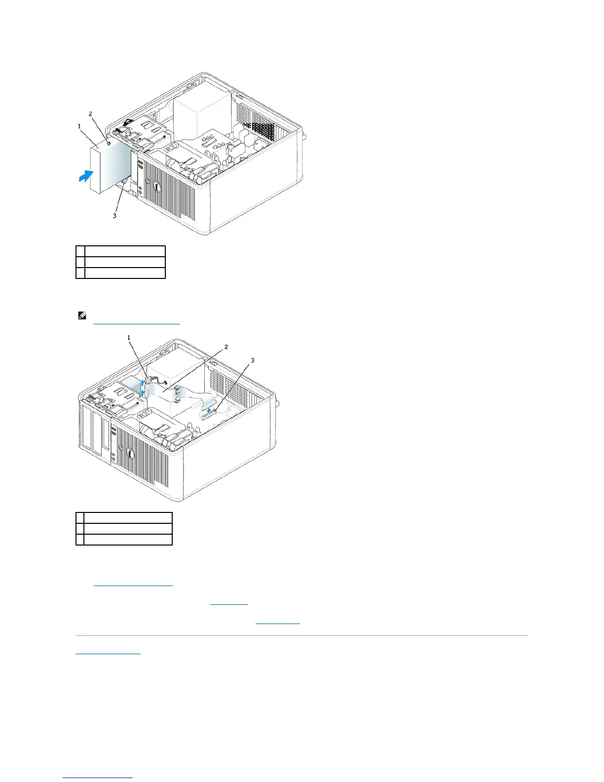 6. Connect the power and CD/DVD drive cables to the drive and to the system board.