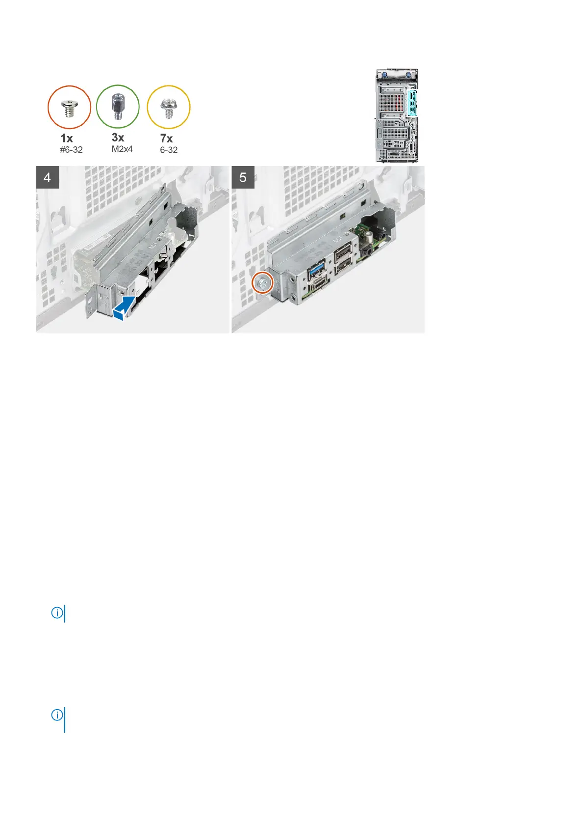 7. Replace the (#6-32) screw that secures the front I/O-bracket to the chassis.