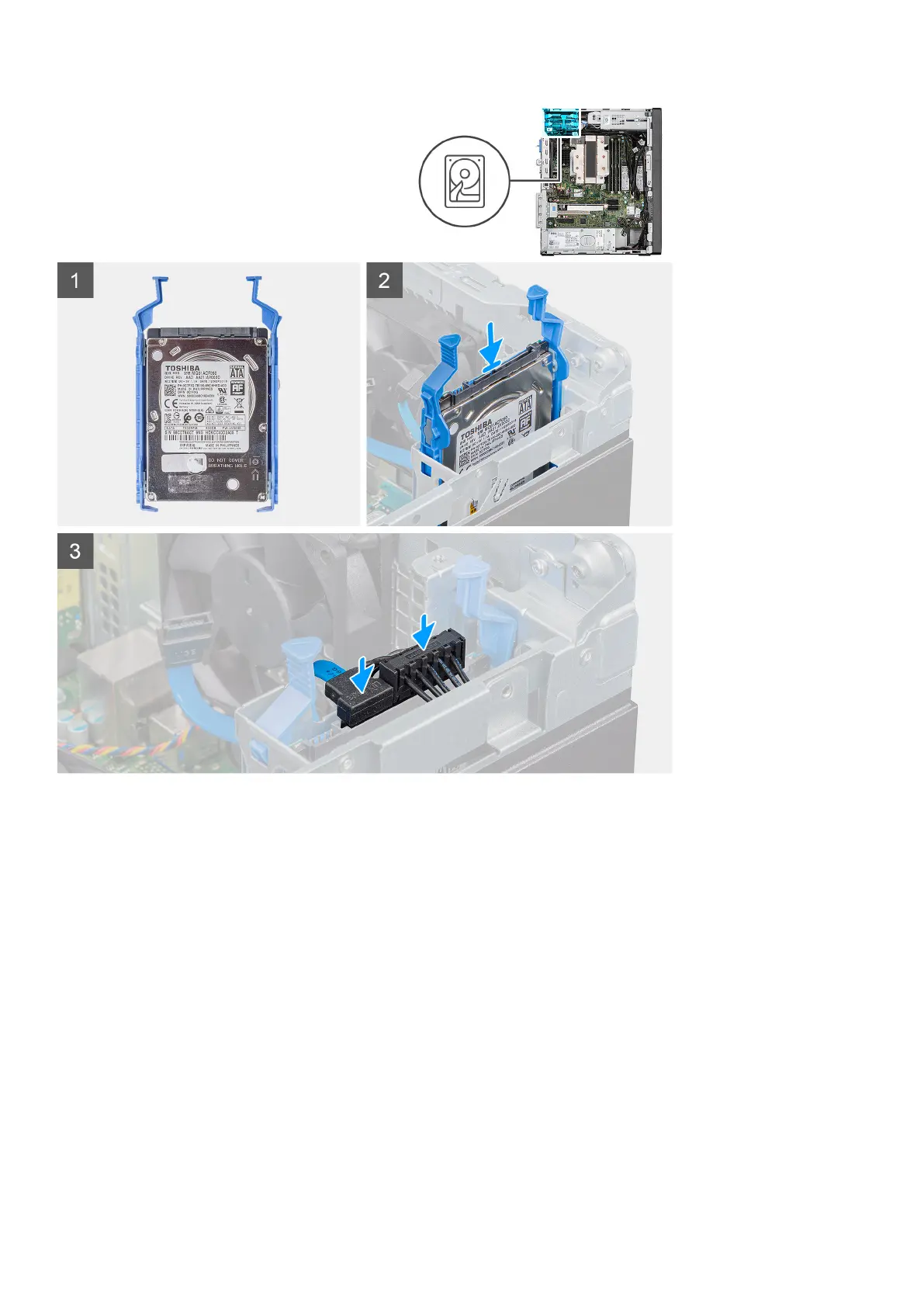 1. Insert the hard drive assembly into the slot on the computer until it clicks into place.