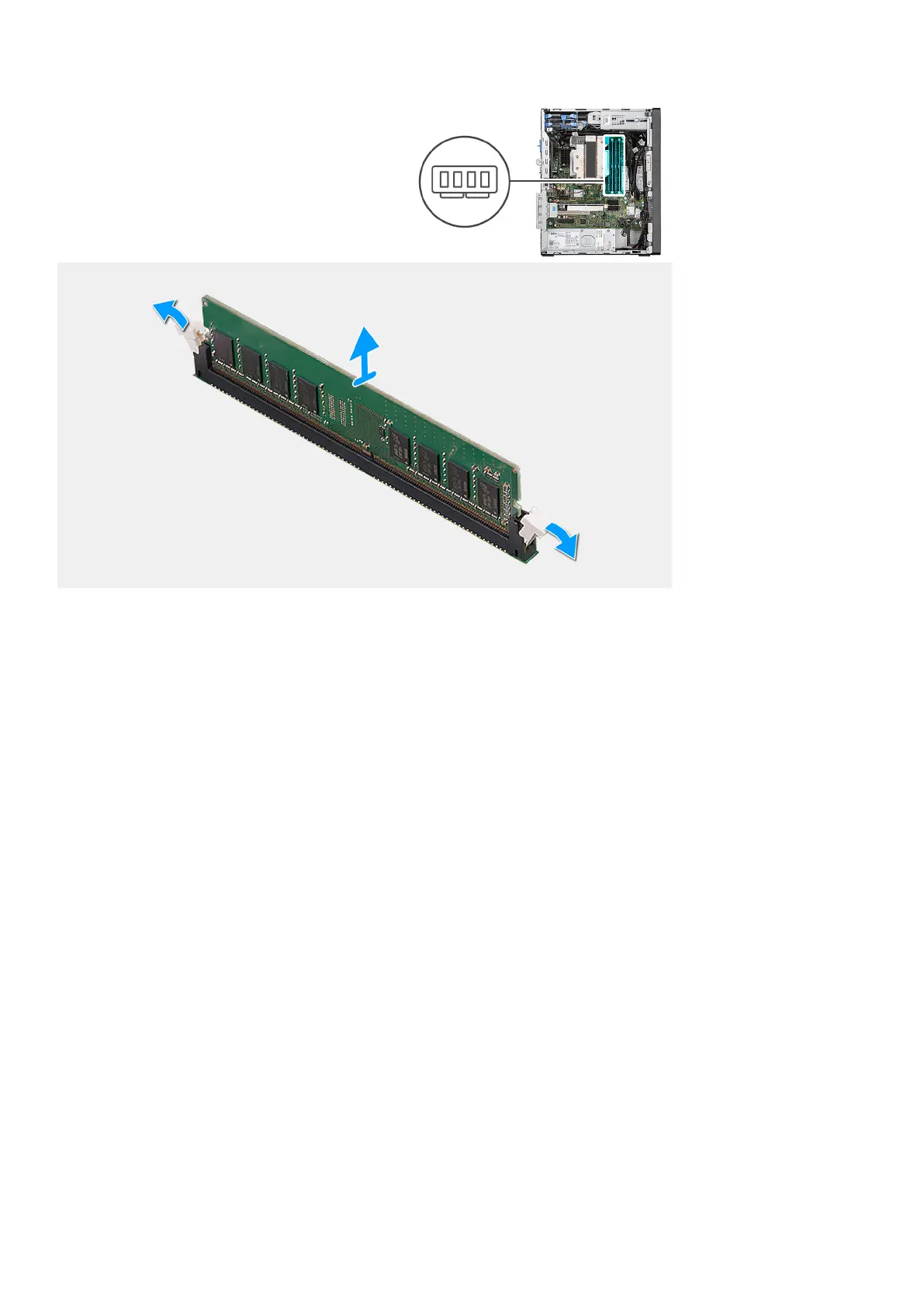 1. Pull the securing clips from both side of the memory module until the memory module pops up.