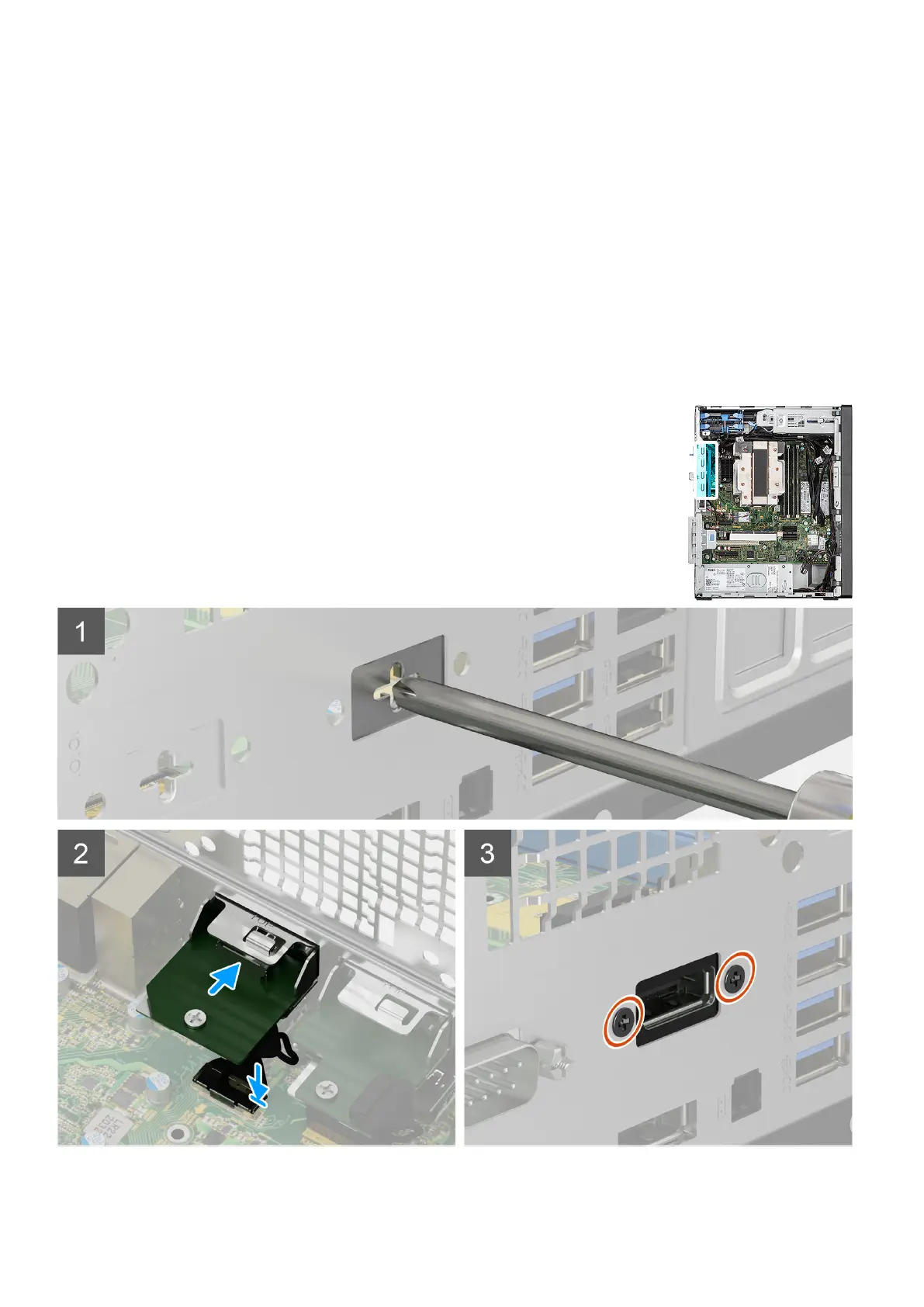 1. Remove the two (M3X3) screws that secure the optional DisplayPort module to the computer chassis.