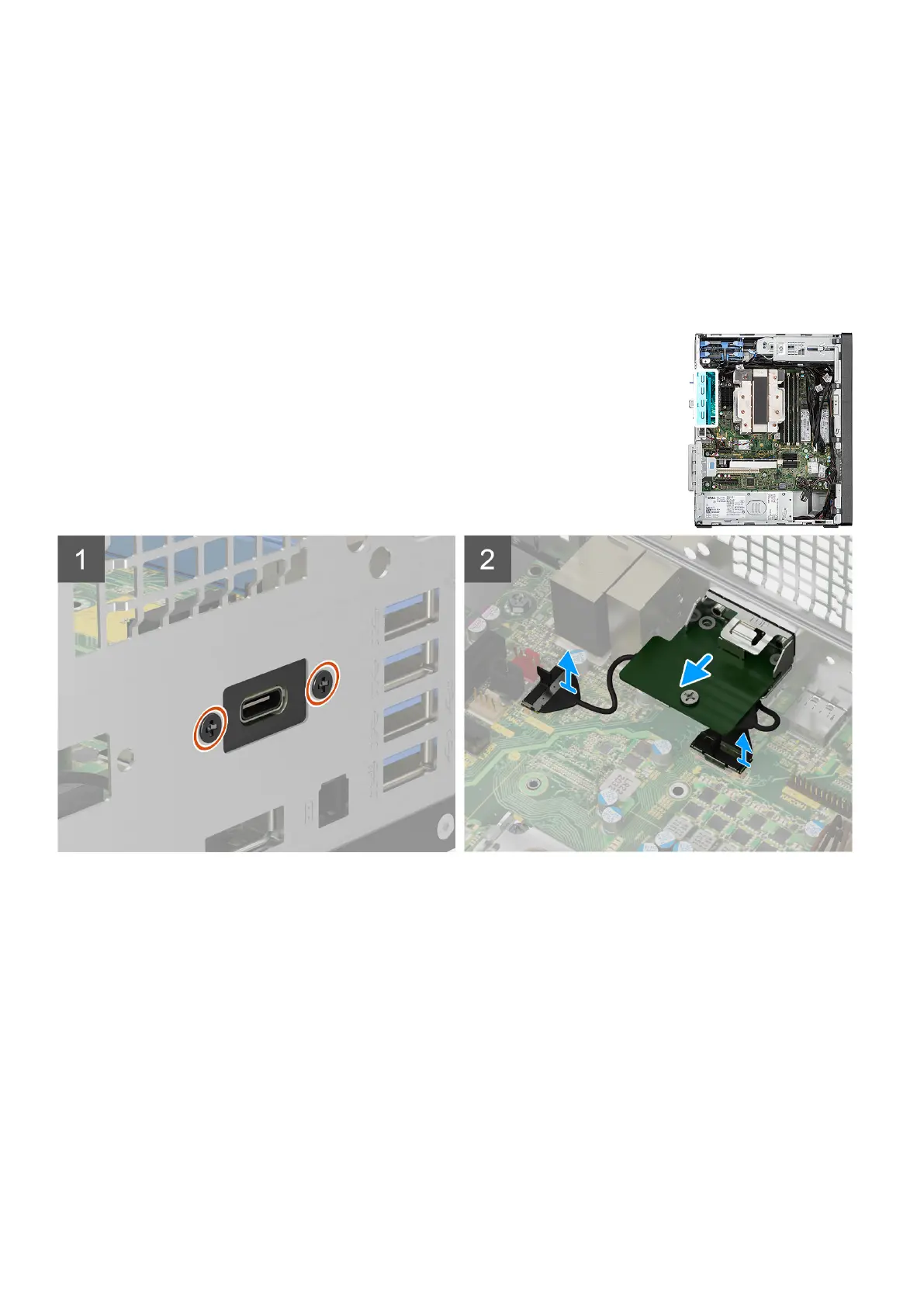 1. Remove the two (M3X3) screws that secure the optional Type-C module to the computer chassis.