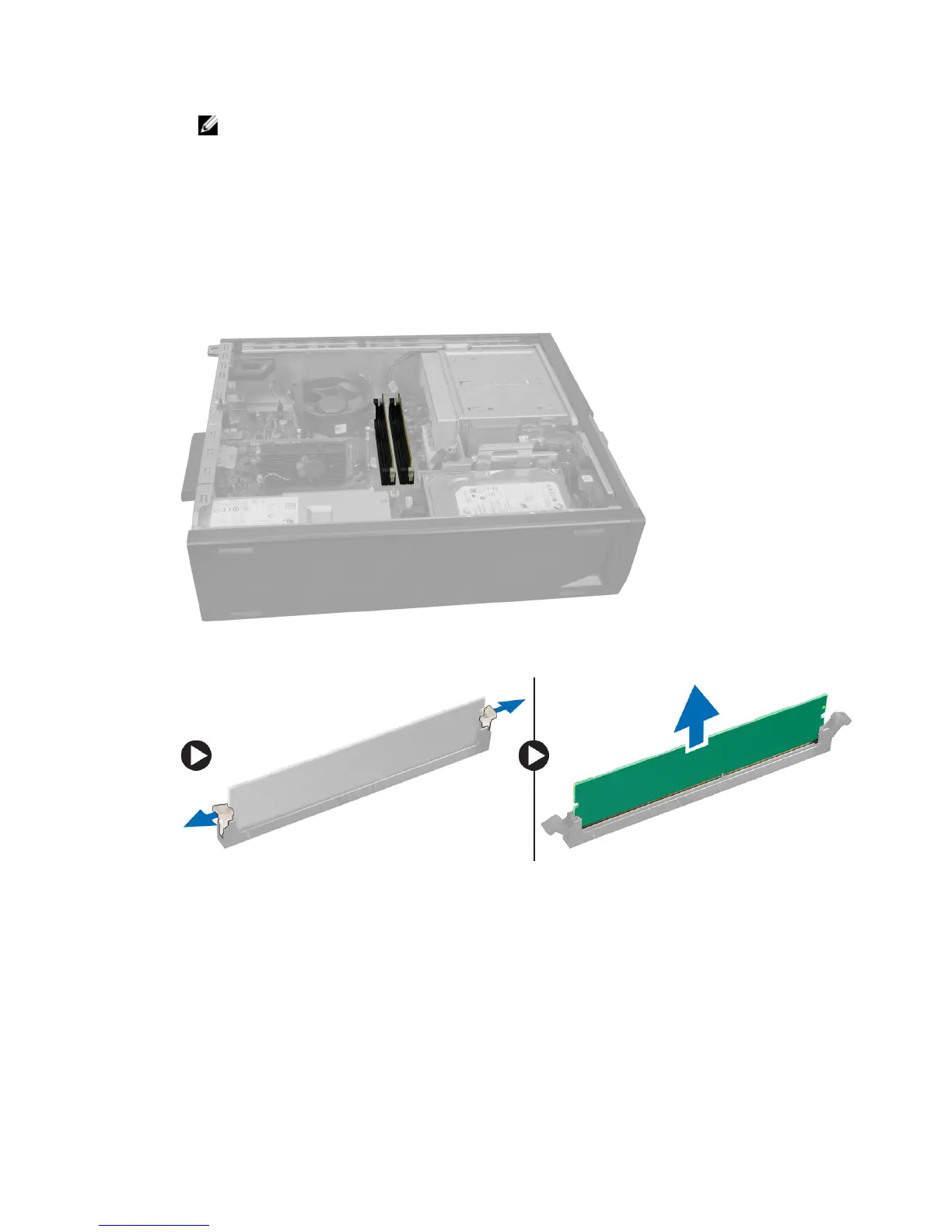 3. Press down on the memory retaining tabs on each side of the memory modules, and lift the memory modules out of