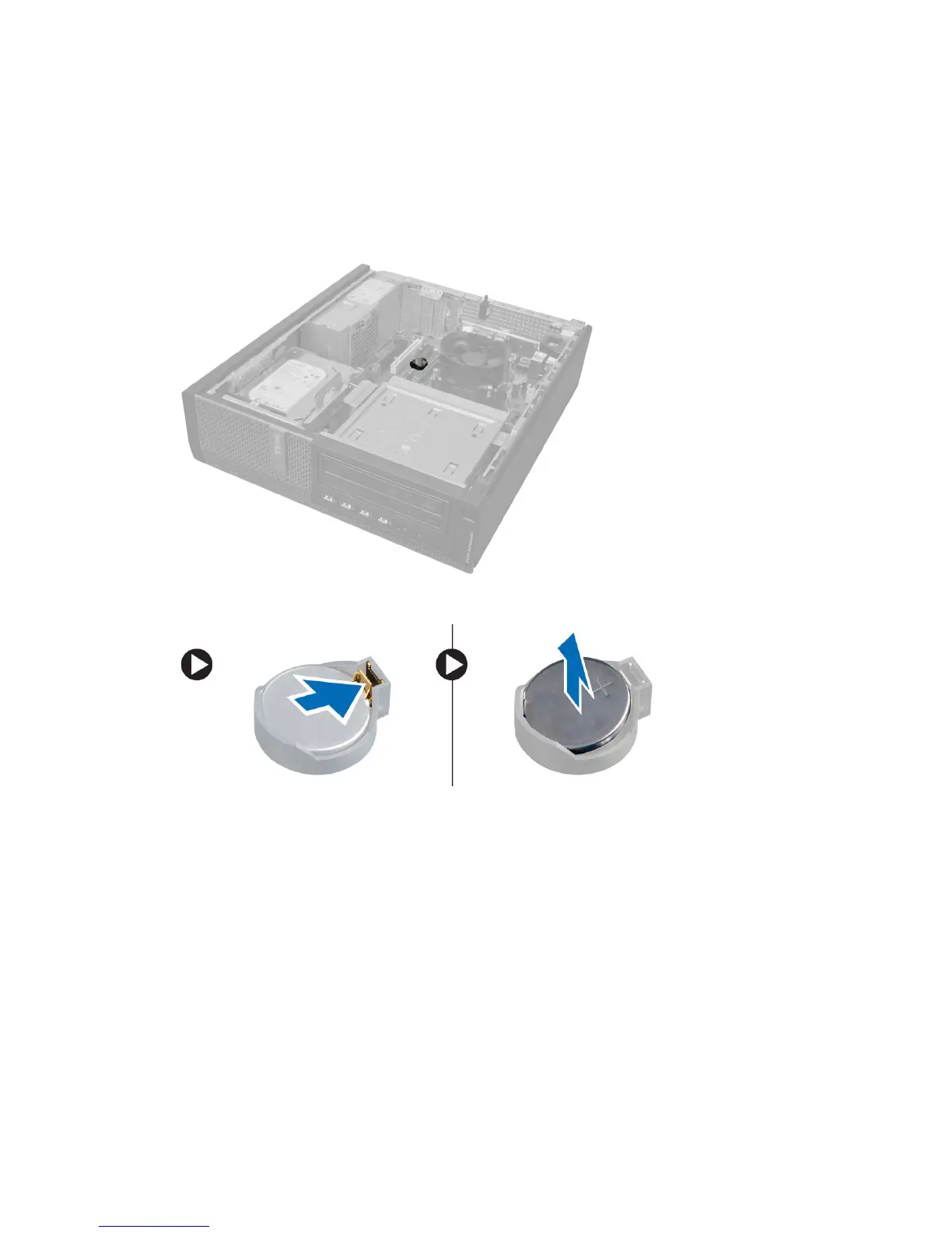 3. Carefully press the release latch away from the battery. The battery pops out from the socket, lift the coin-cell