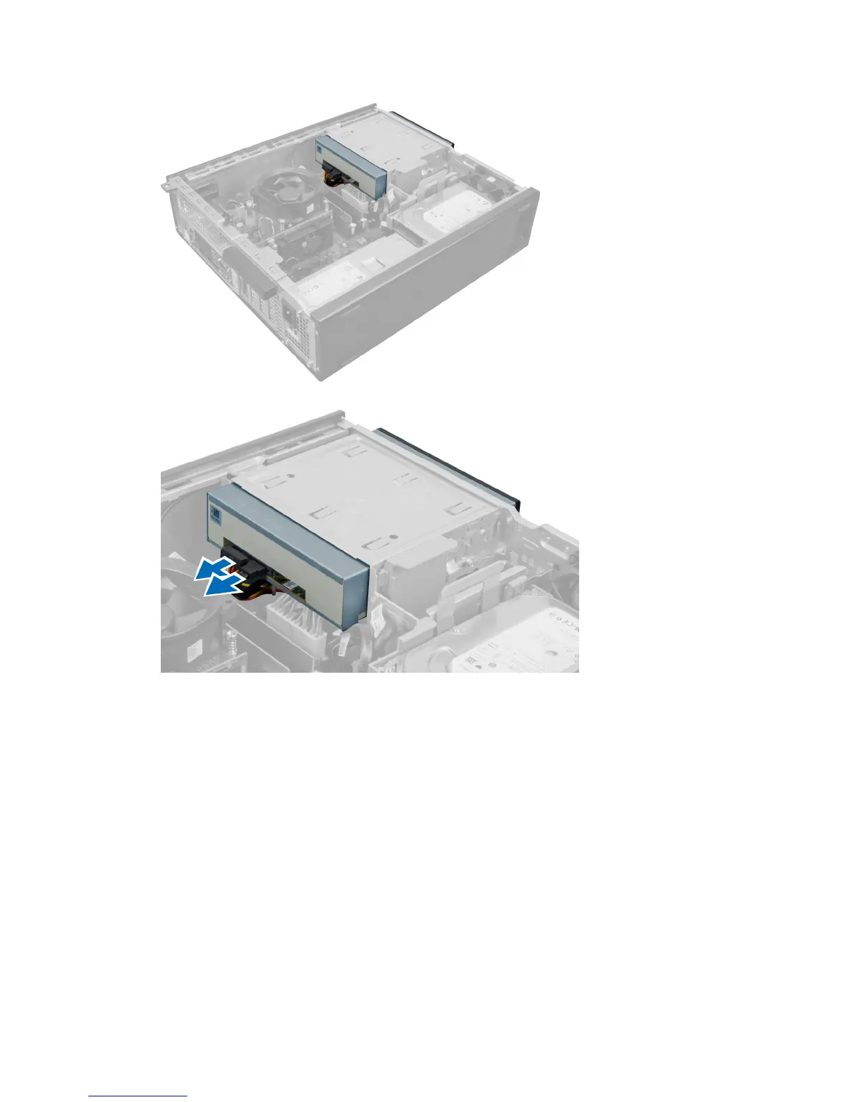 3. Remove the data cable and power cable from the back of the optical drive.