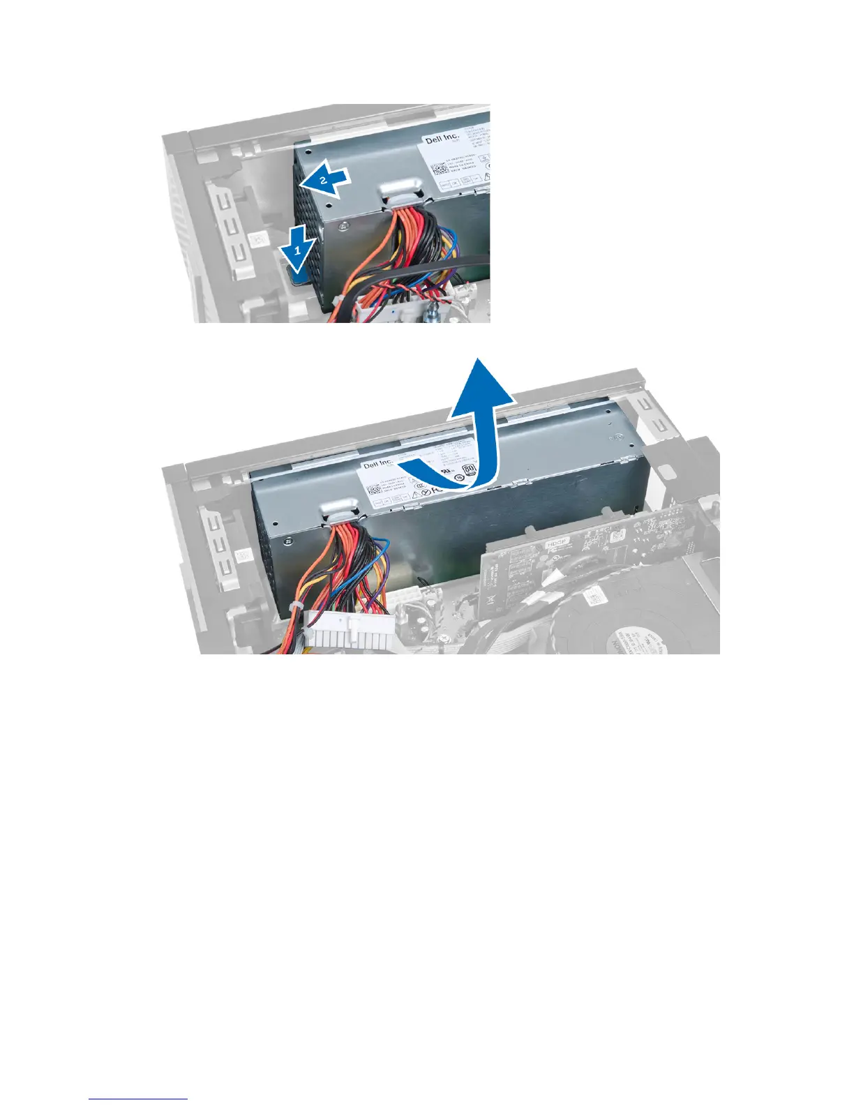 1. Place the power supply in the chassis and slide towards the back of the computer to secure it.