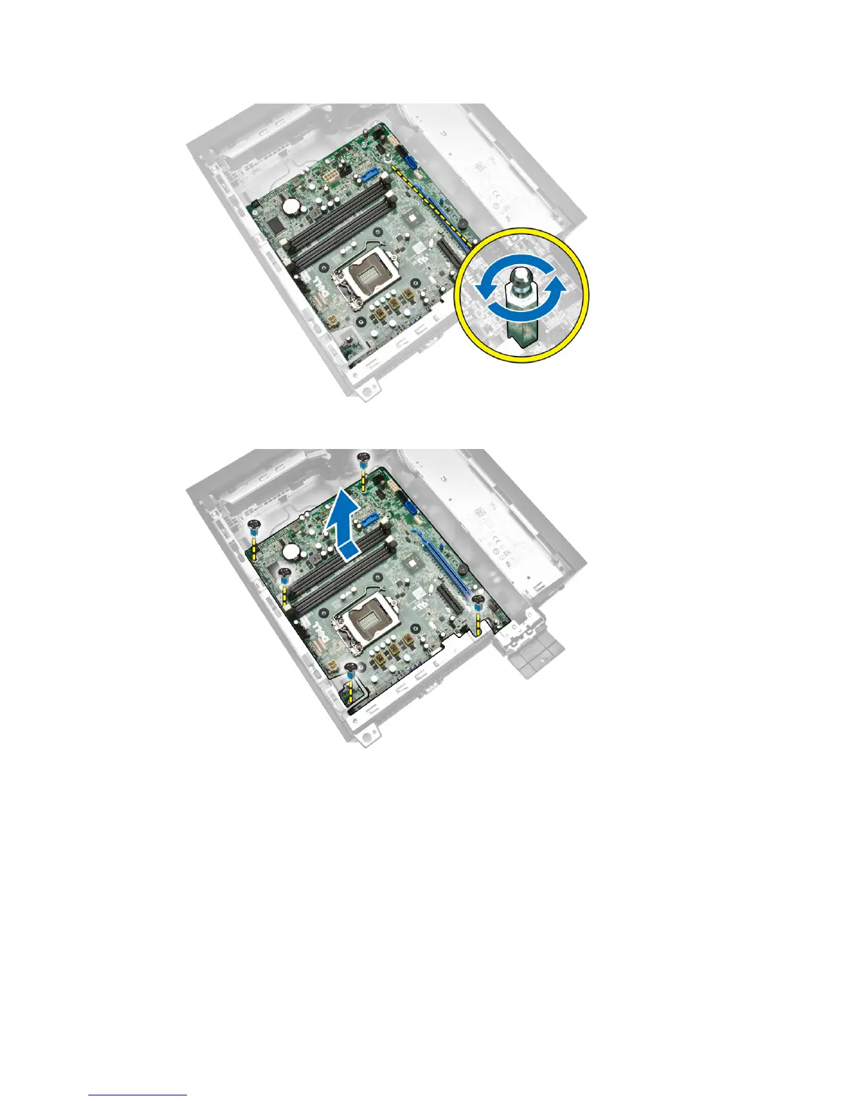 5. Remove the screws that secure the system board to the computer and slide the system board