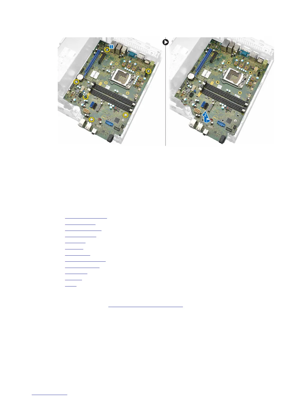 align with the slots on the back wall of the computer, and the screw holes on the system board align