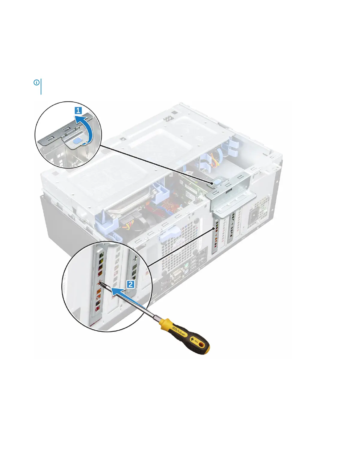 2 To remove the PCIe brackets (1 and 3) as shown below, insert a screwdriver in the hole of a PCIe bracket and push hard to release the