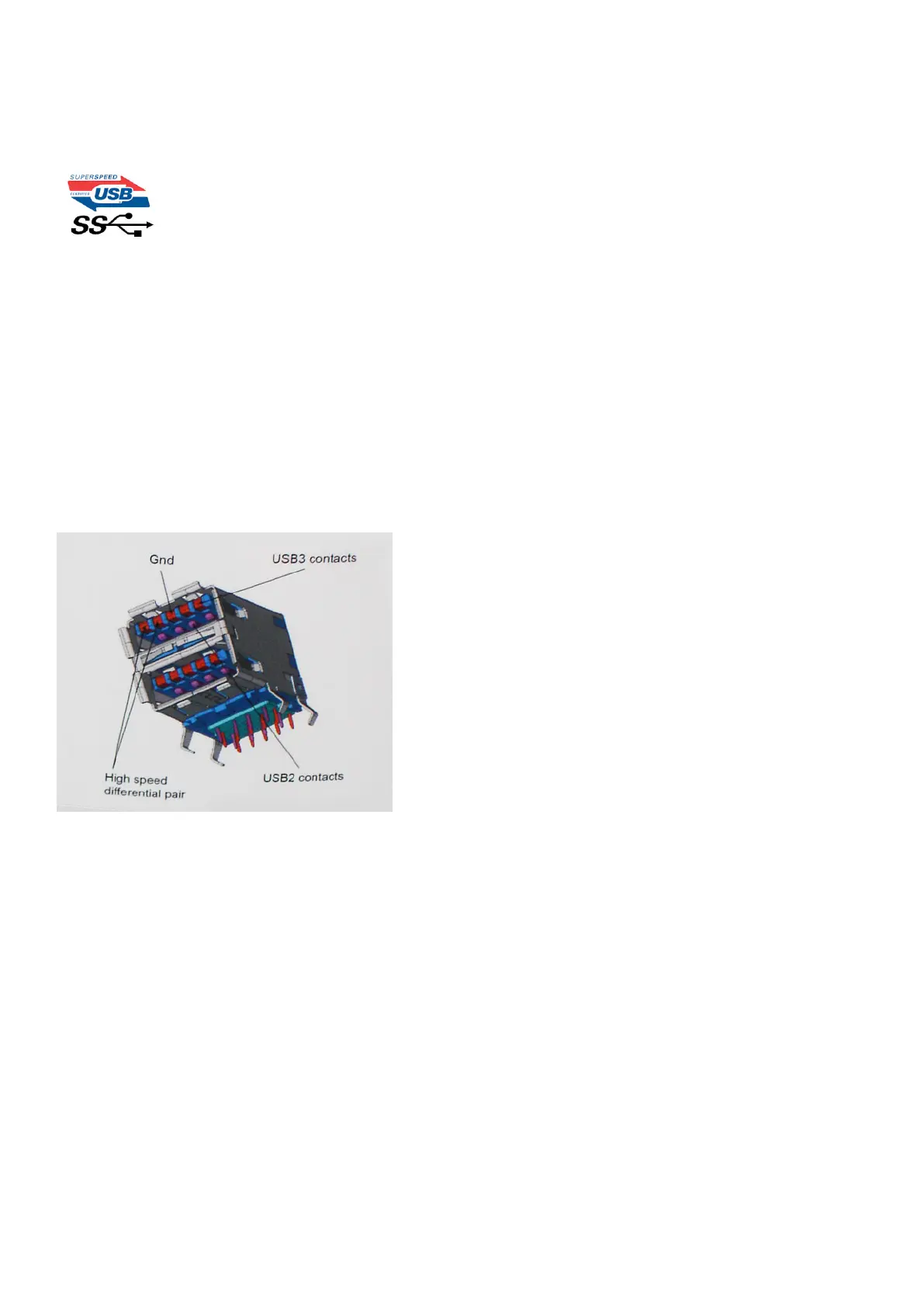 ● USB 2.0 previously had four wires (power, ground, and a pair for differential data); USB 3.0/USB 3.1 Gen 1 adds four more