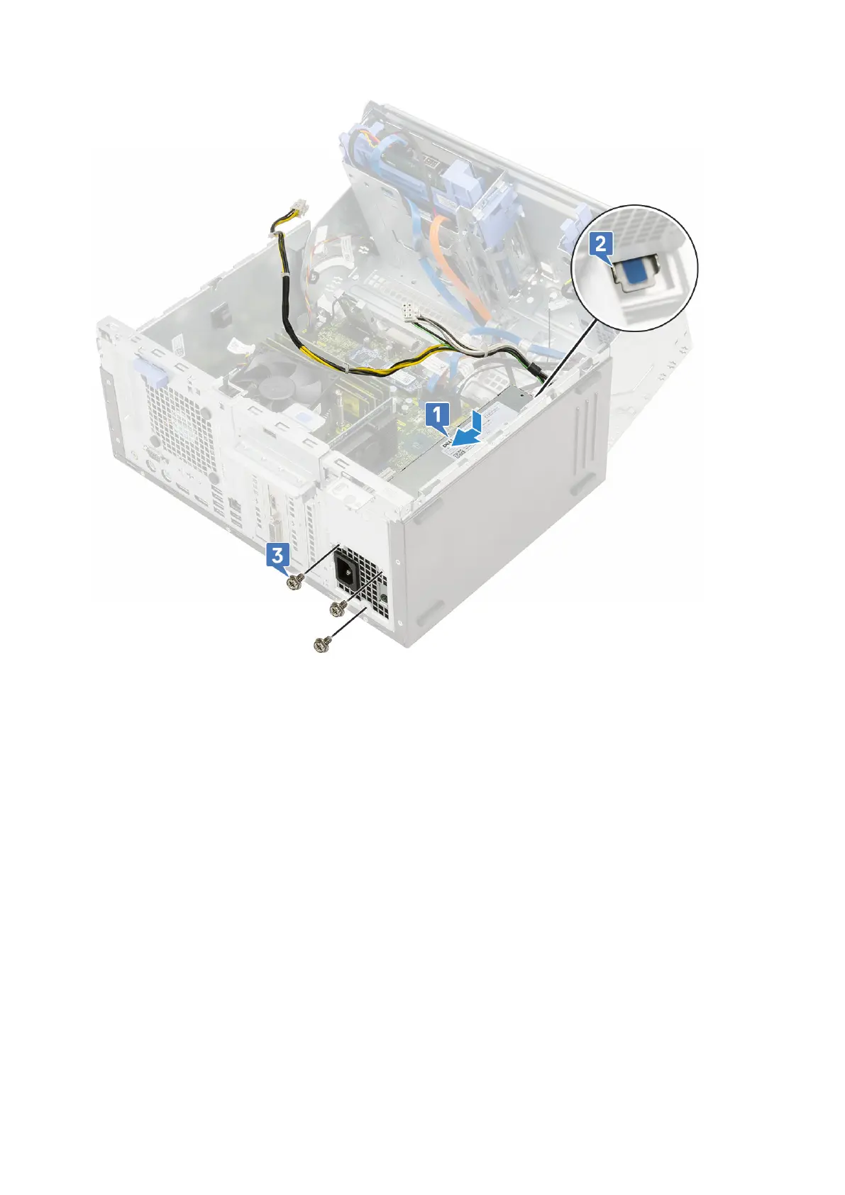 d. Route the PSU cables through the retention clips [2,3,4,5,6].