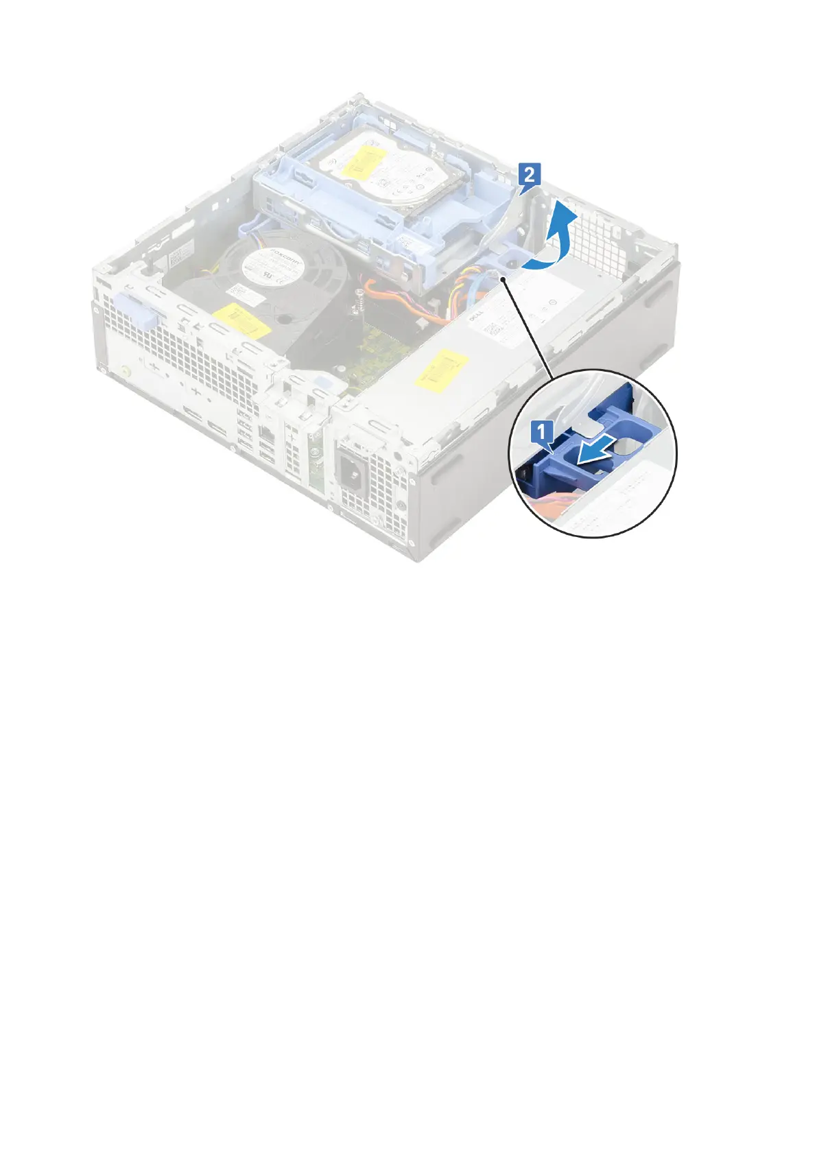 d. Disconnect the optical drive data cable and optical drive power cable from the connectors on the optical drive [1, 2] and
