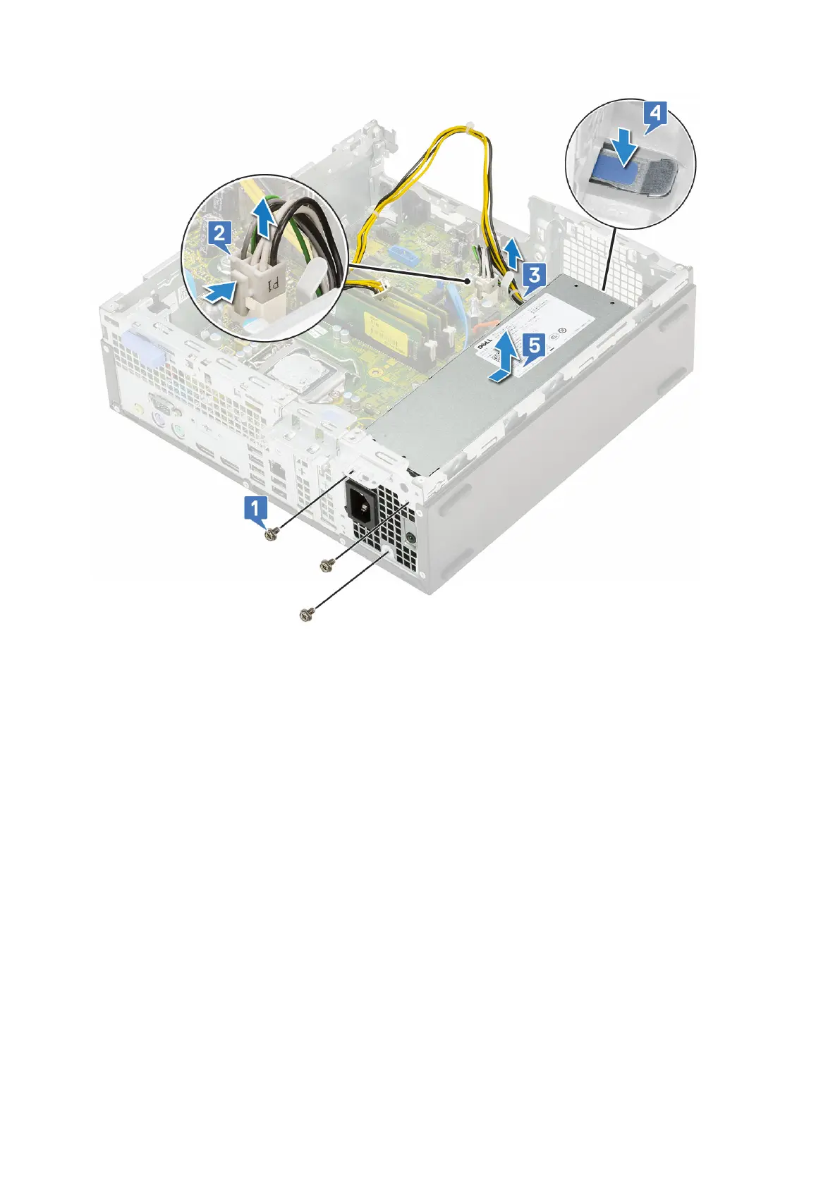 4. Replace the screws to secure the PSU to the rear chassis of the system [5].