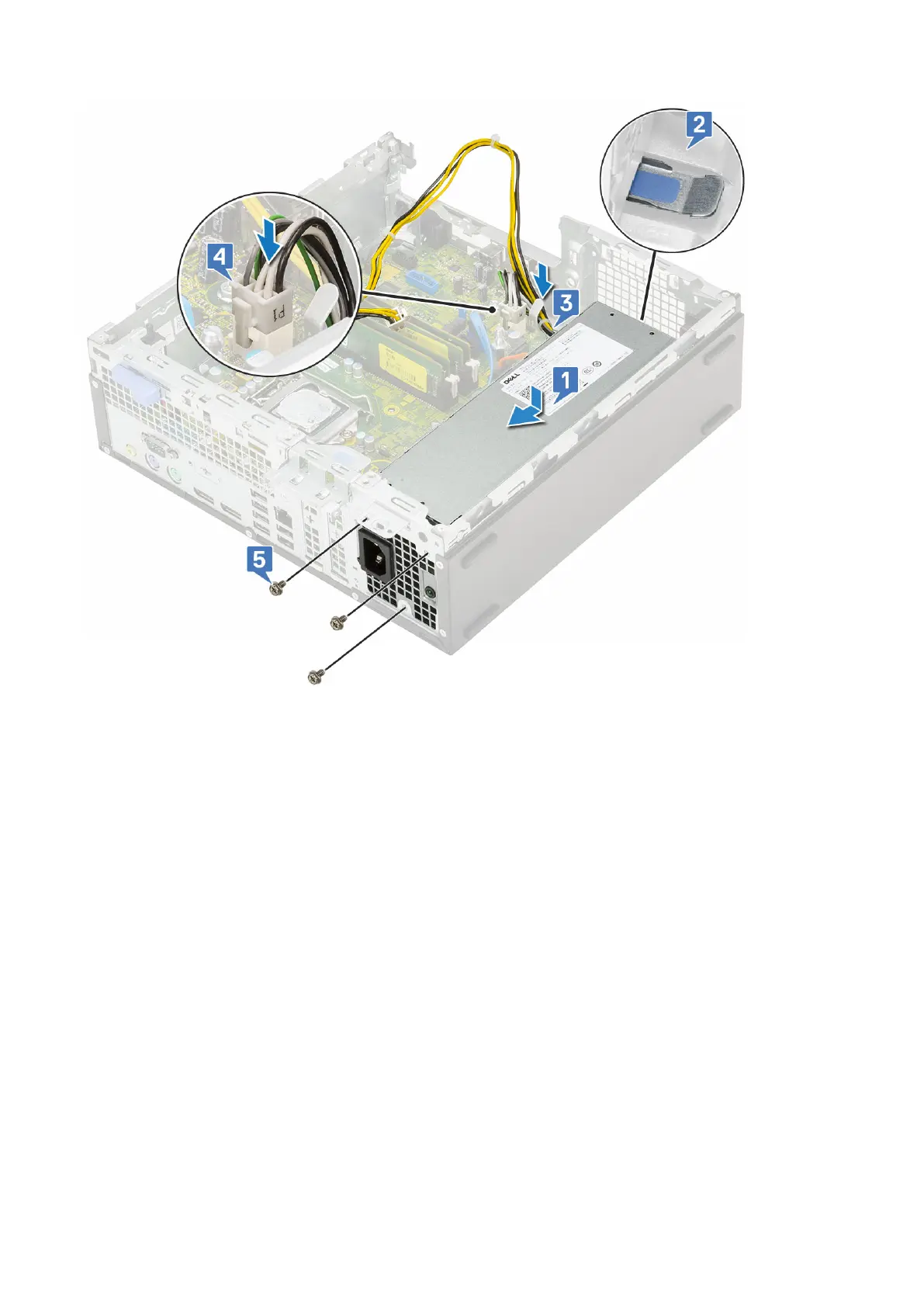5. Route the CPU power cable through the retention clips [1].