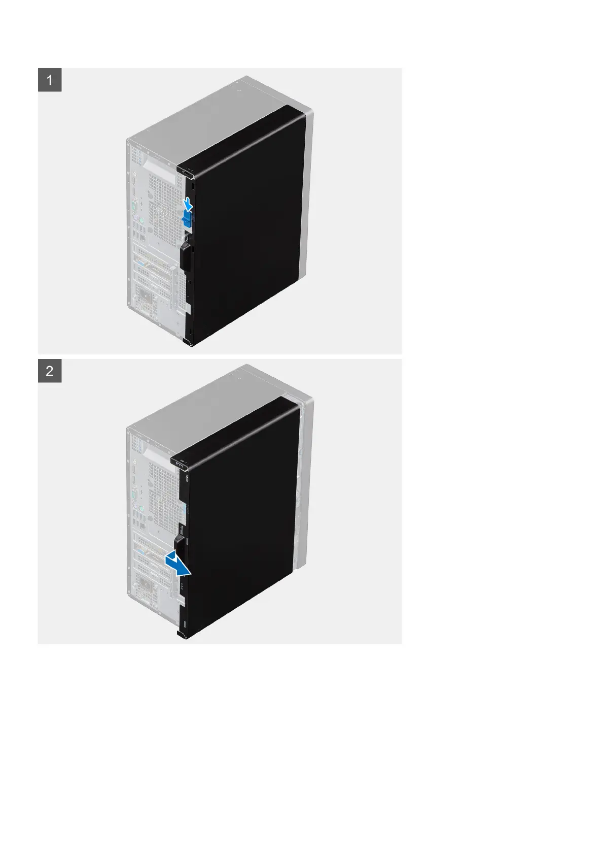 1. Push the release latch down to unlock the side cover.
