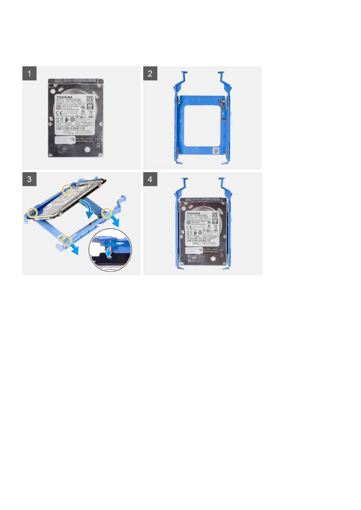 1. Place the hard drive into the hard-drive bracket and align the tabs on the bracket with the slots on the hard drive.