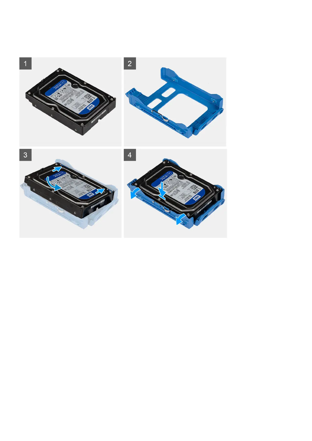 1. Place the hard drive into the hard-drive bracket and align the tabs on the bracket with the slots on the hard drive.