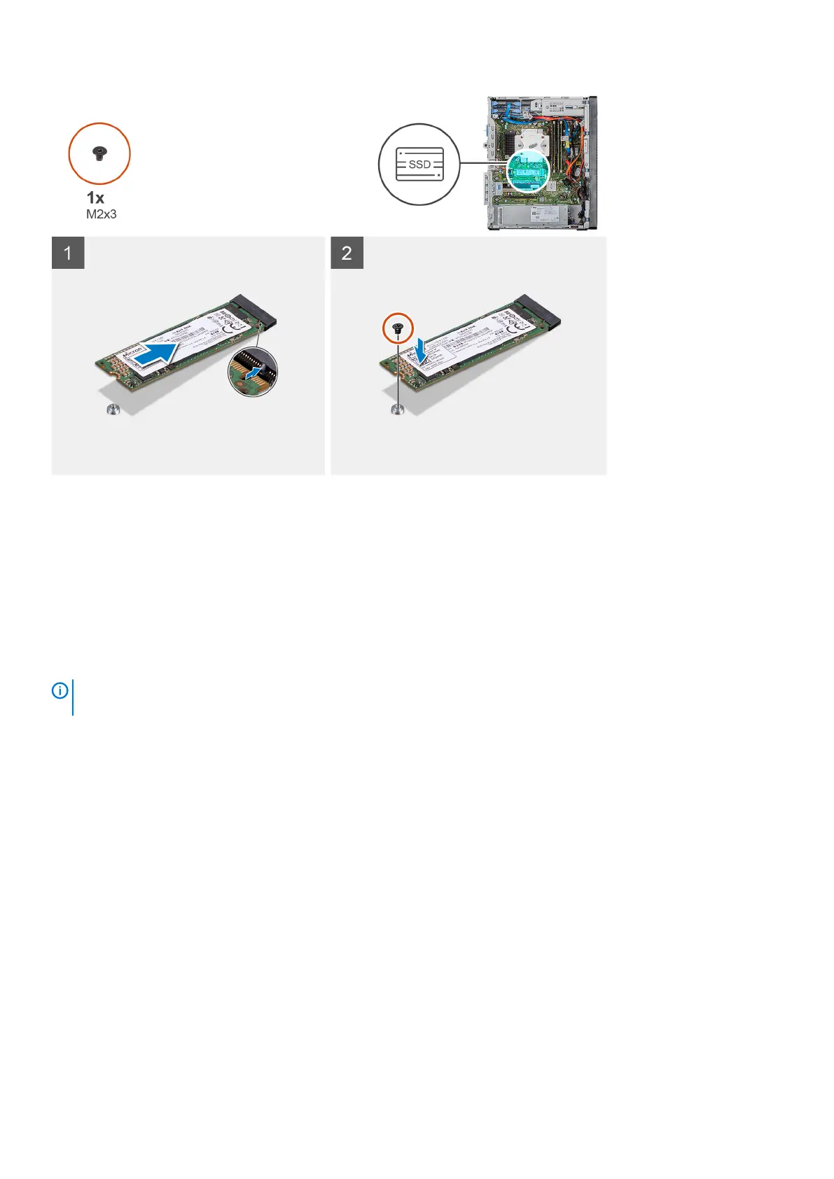 4. Replace the screw (M2x3) that secures the 2230 solid-state drive/Intel Optane memory to the system board.