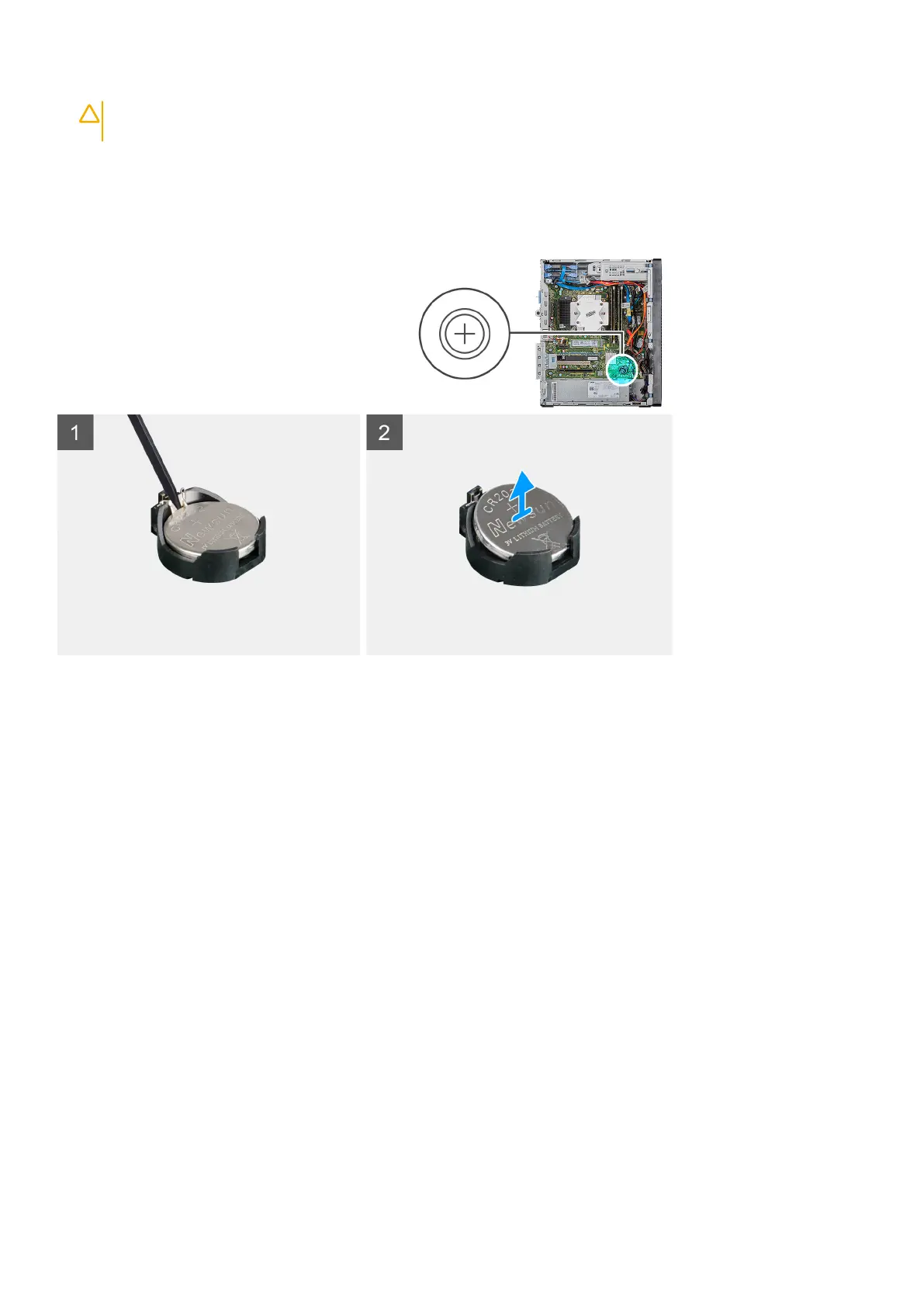 The following images indicate the location of the coin-cell battery and provides a visual representation of the removal procedure.