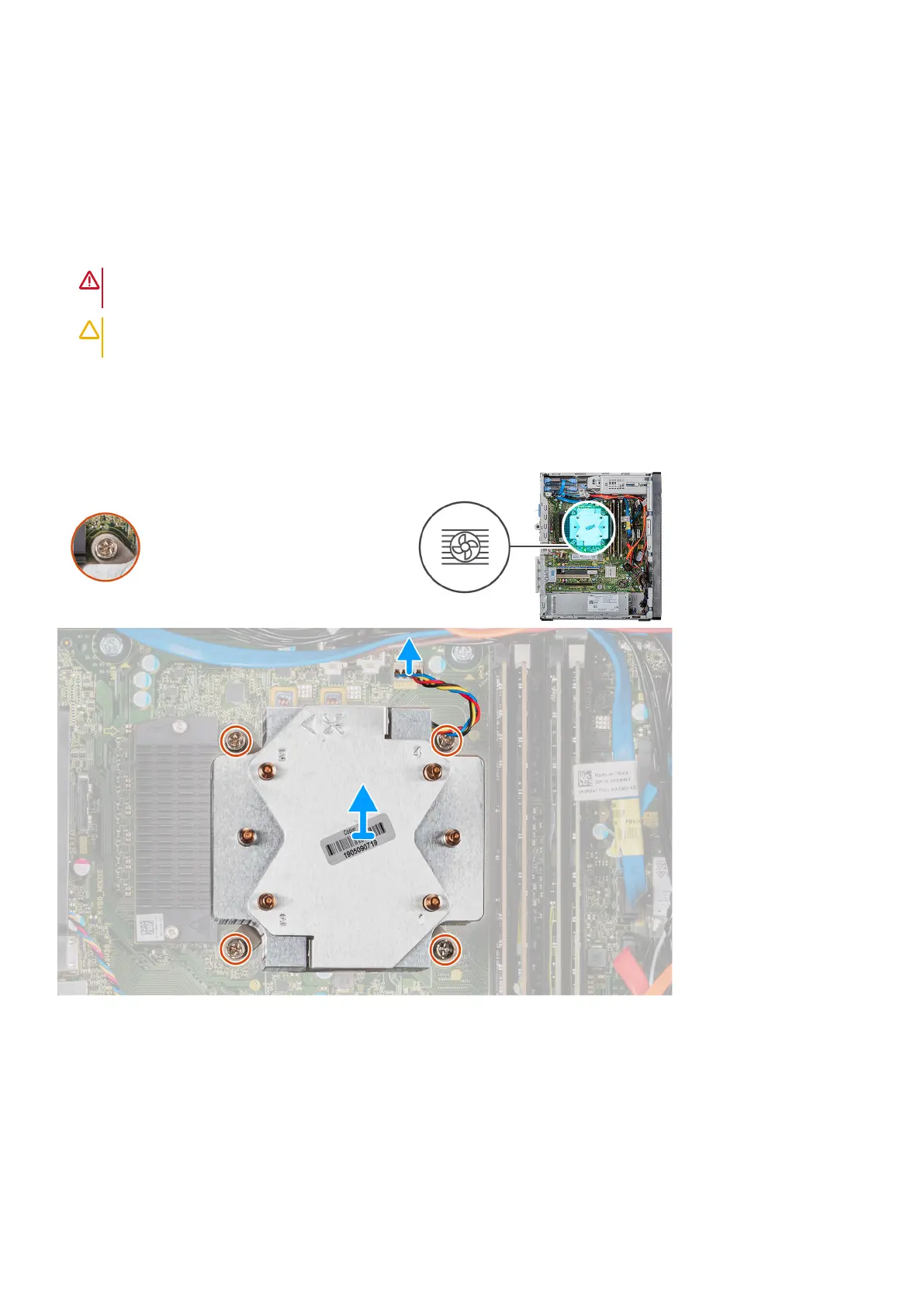The following images indicate the location of the processor fan and 95 W heat-sink assembly and provides a visual representation of the