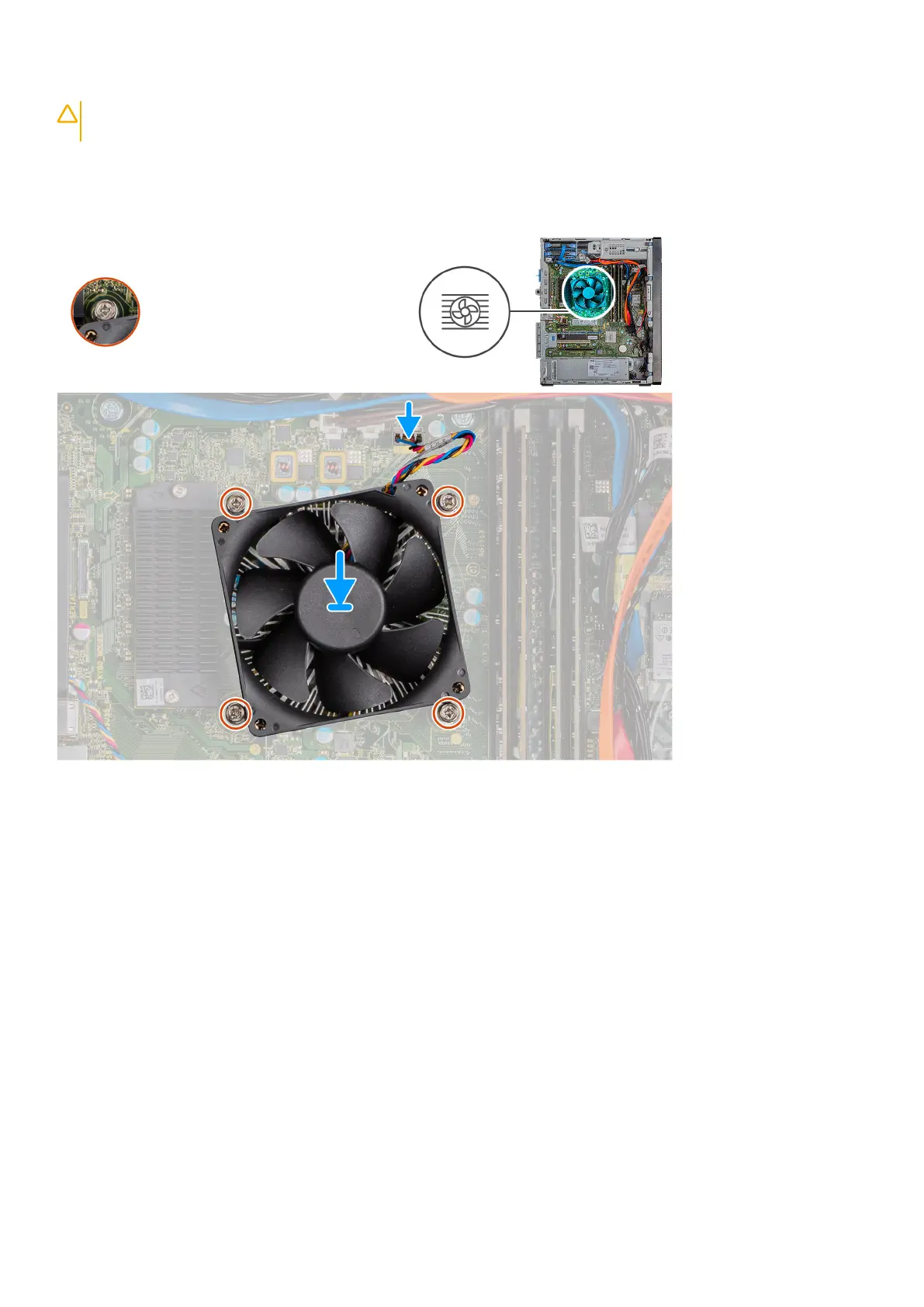 1. Align the screw holes on the processor fan and heat-sink assembly with the screw holes on the system board.