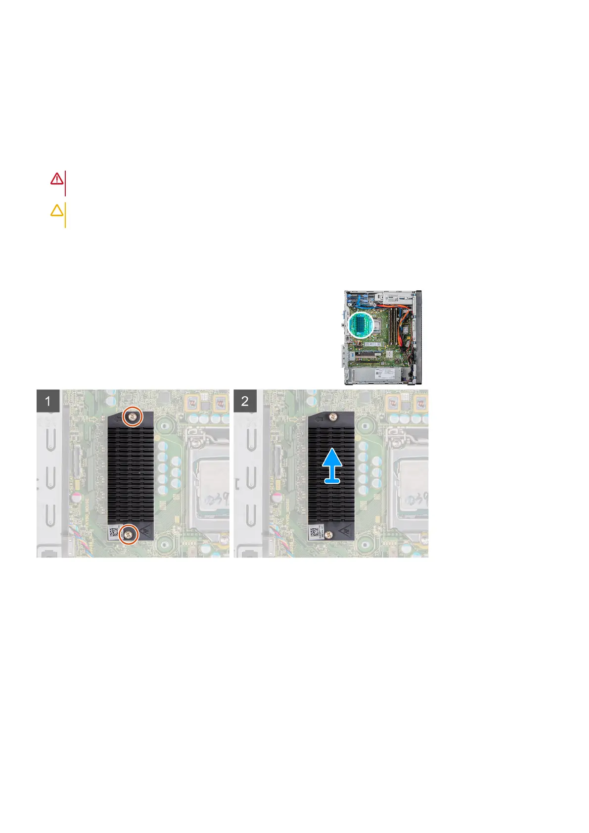 The following images indicate the location of the VR heat sink and provides a visual representation of the removal procedure.