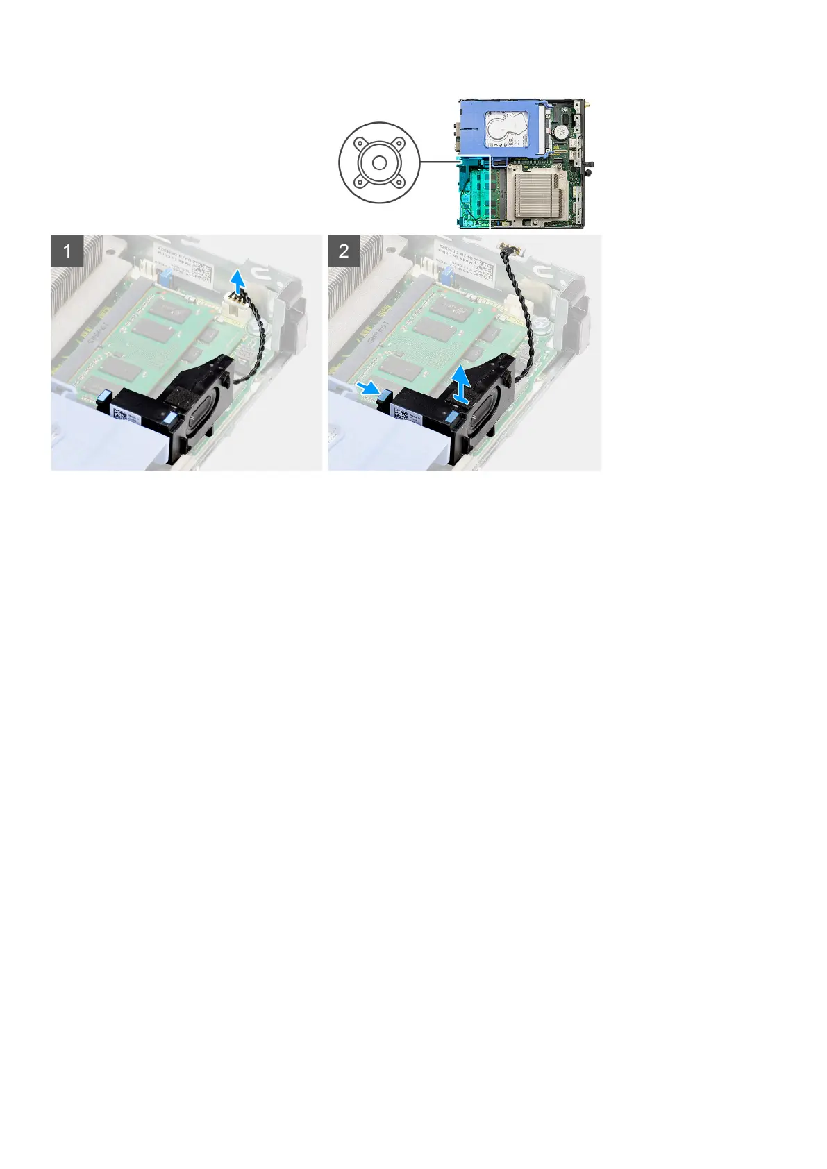 2. Press the release tab and lift the speaker along with the cable from the system board.