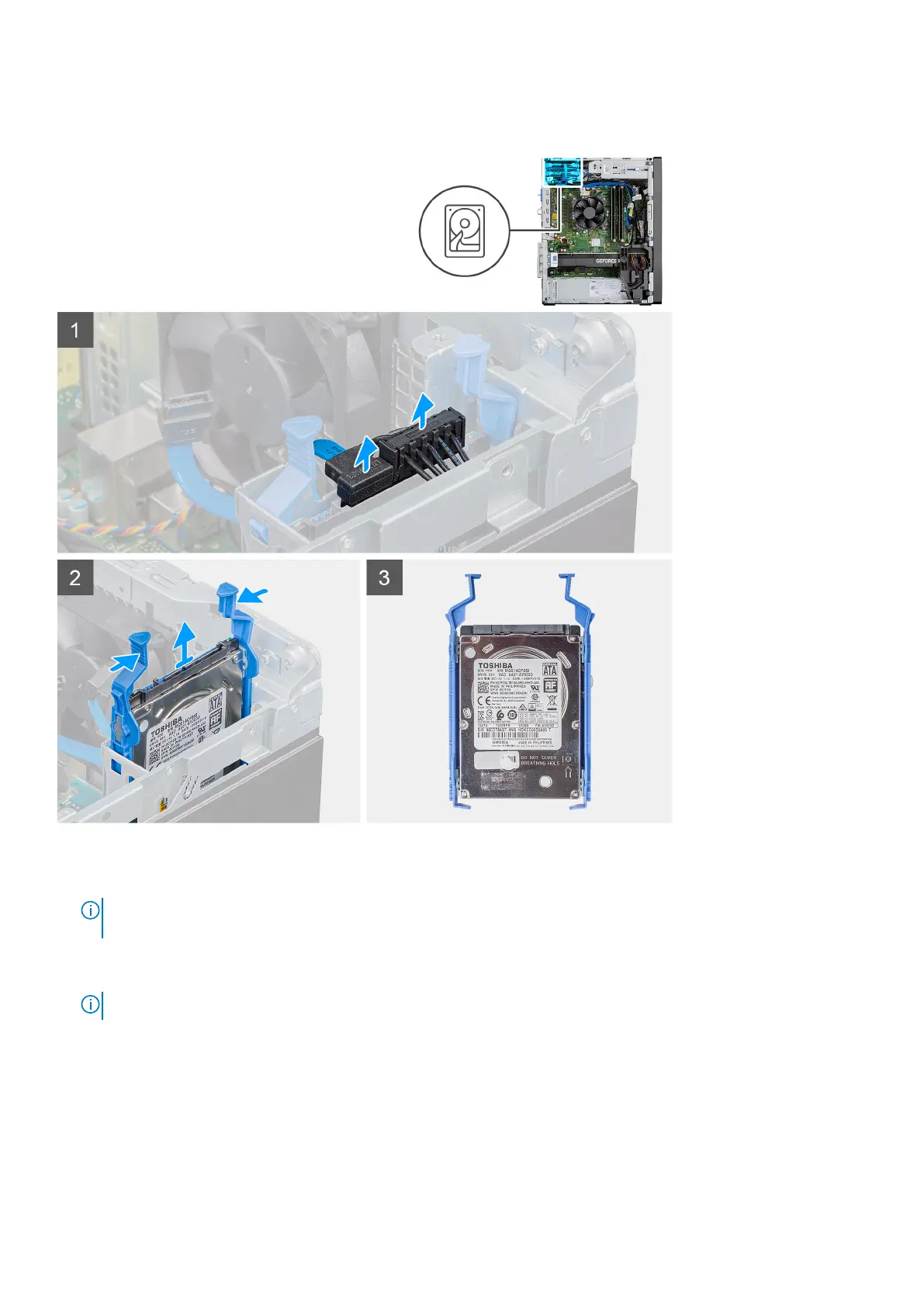 The following images indicate the location of the 2.5-inch hard-disk drive and provide a visual representation of the removal procedure.