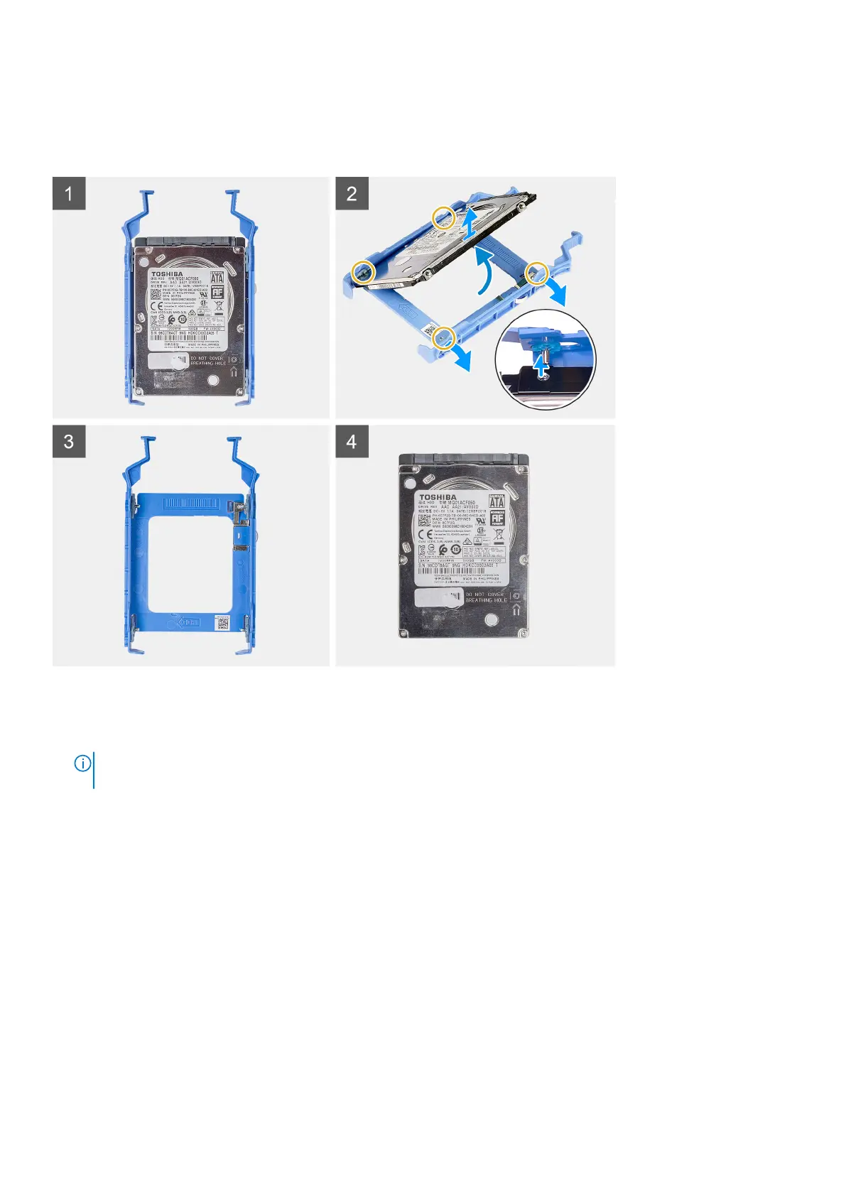 Note the orientation or the SATA connector marking on the hard-disk drive so that you can replace it