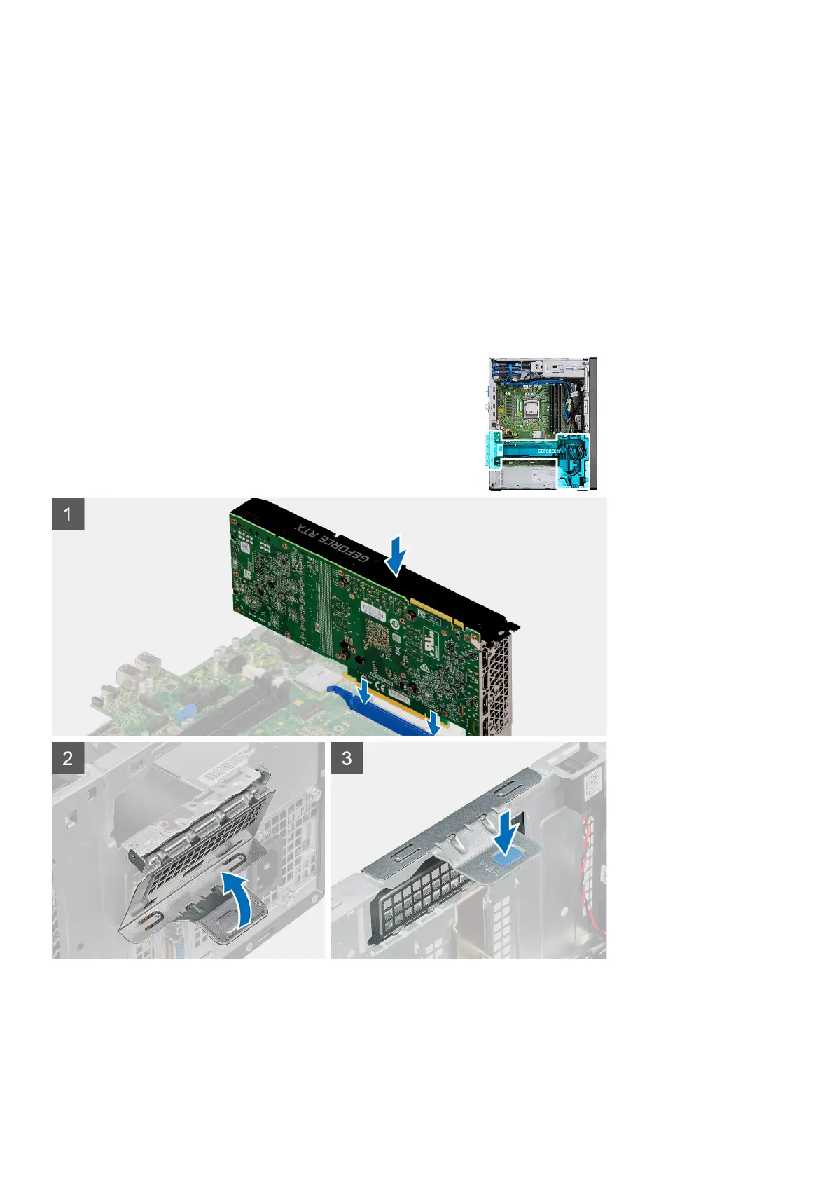 The following images indicate the location of the powered graphical processing unit and provides a visual representation of the installation