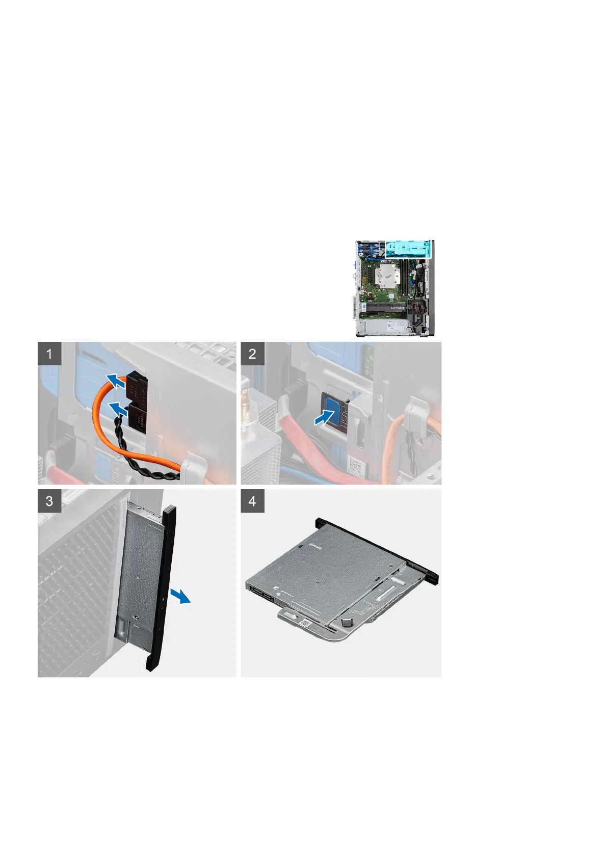 The following images indicate the location of the slim ODD and provides a visual representation of the removal procedure.