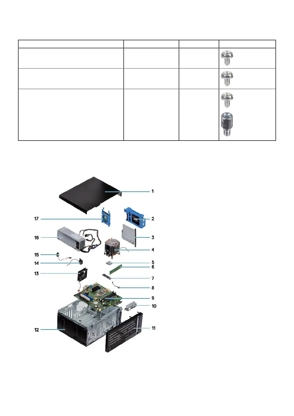 Table 1. Screw list (continued)