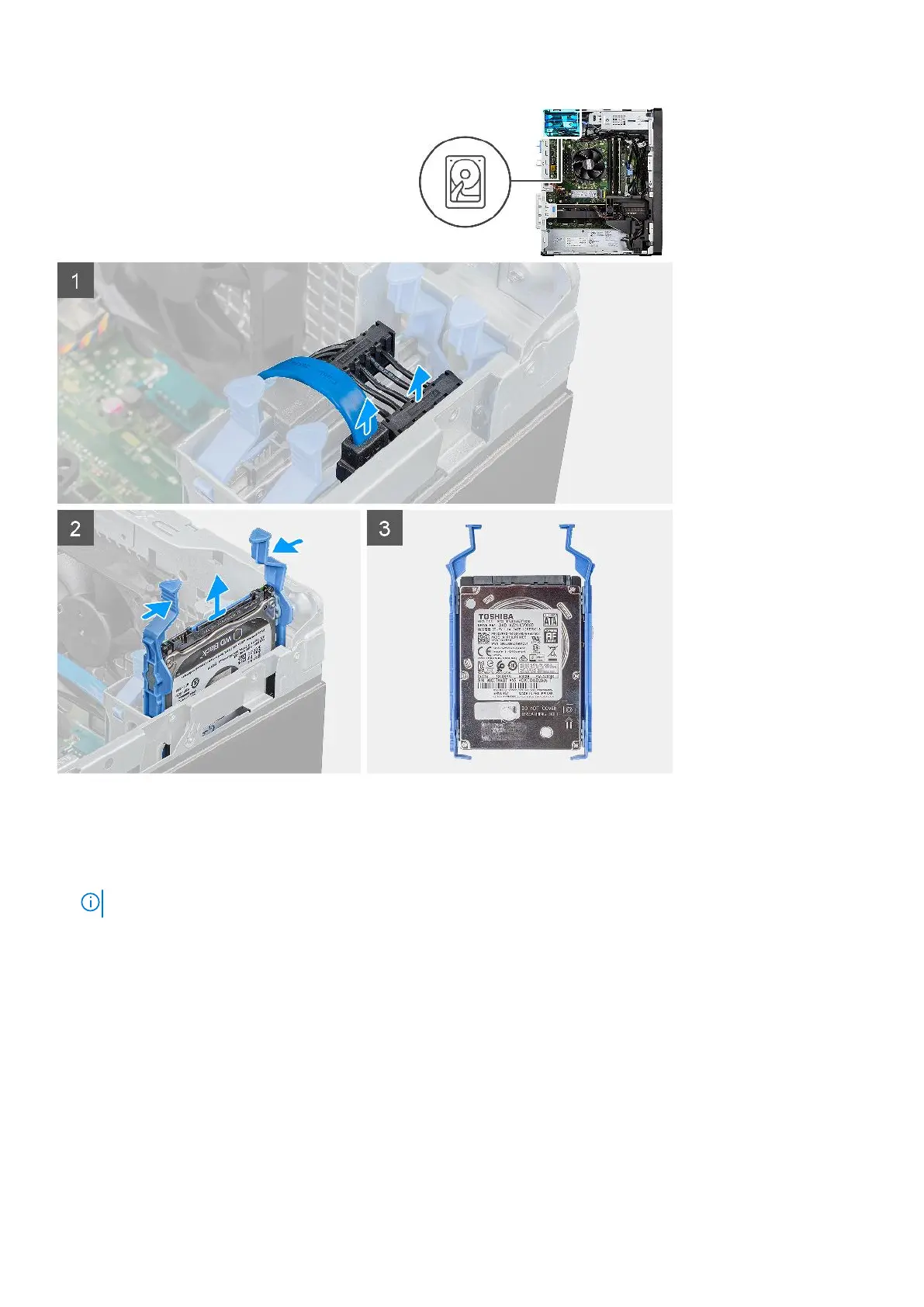 The following images indicate the location of the 2.5-inch hard-disk drive and provide a visual representation of the removal