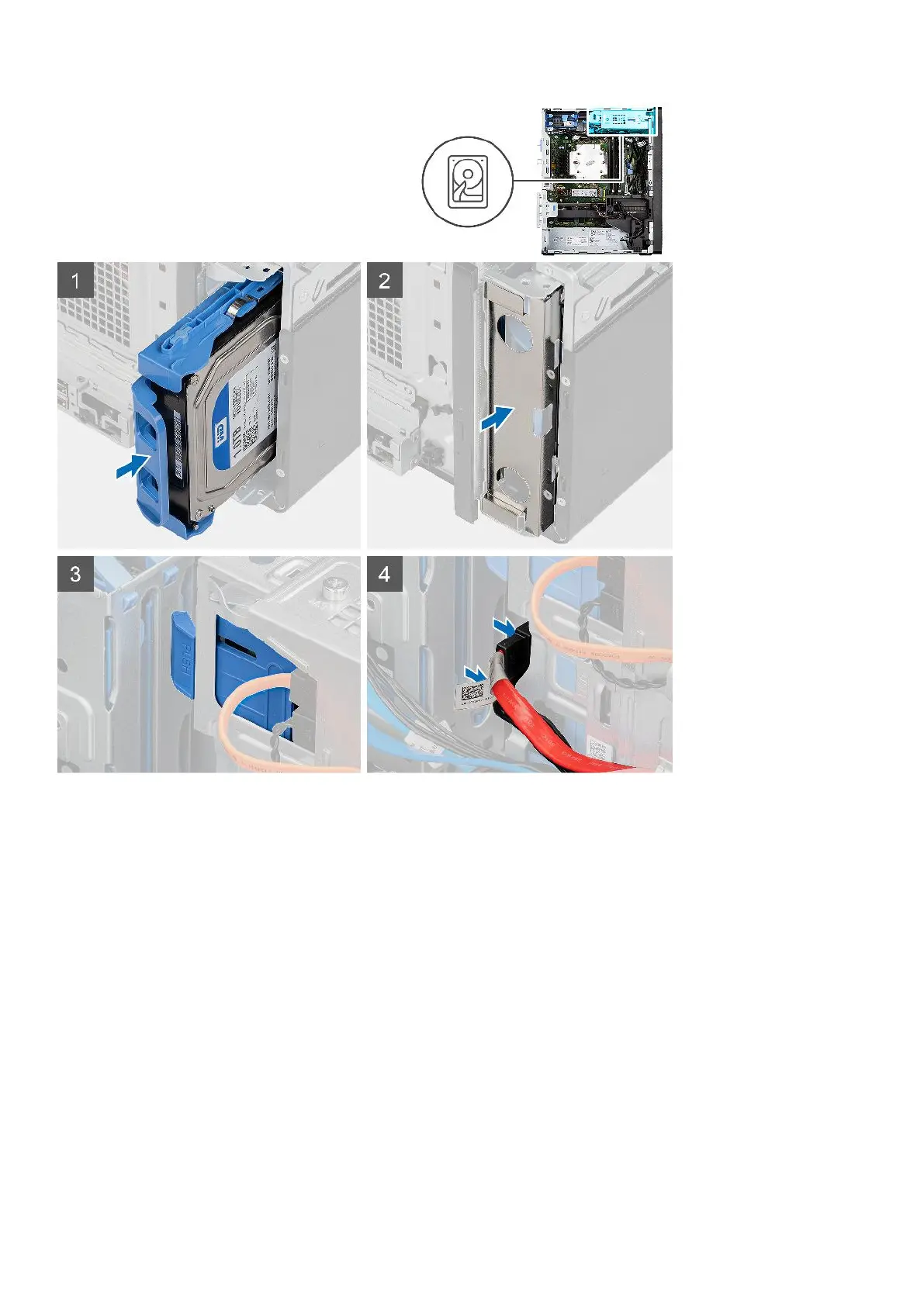 4. Route the power cable and the data cable through the routing guides on the hard-disk drive assembly and connect the
