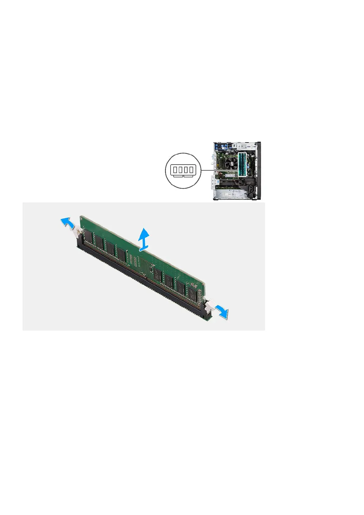 1. Pull the securing clips from both side of the memory module until the memory module pops up.