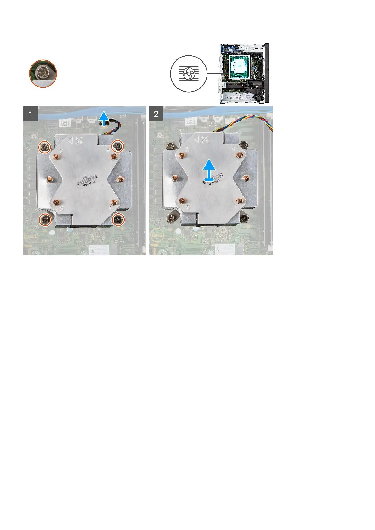 The following images indicate the location of the processor fan and provide a visual representation of the removal procedure.