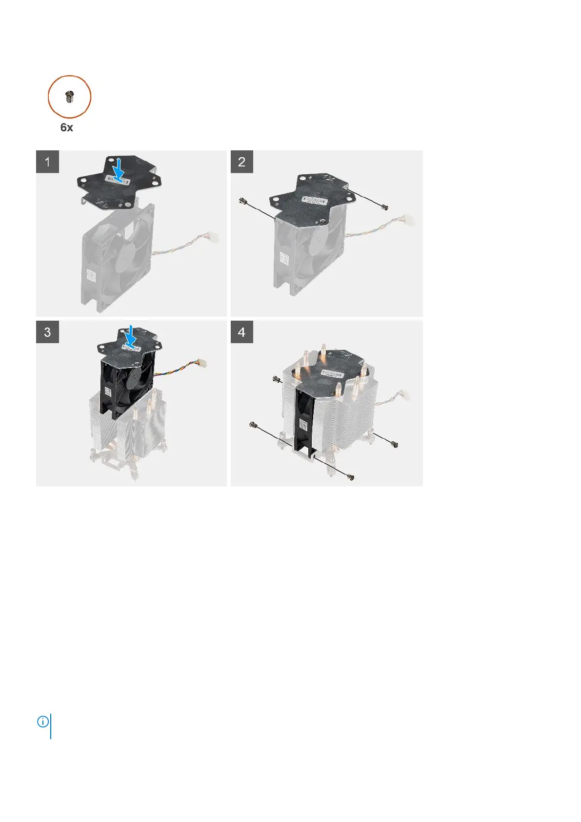3. Replace the six screws to secure the processor fan to the heat-sink assembly.