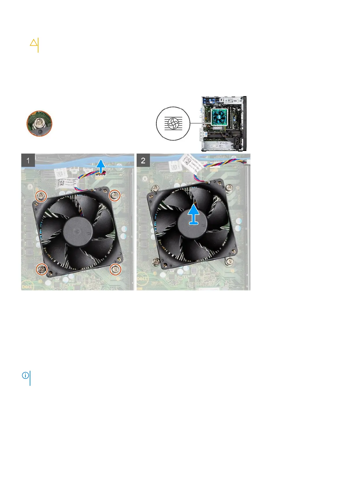 The following images indicate the location of the processor fan and heat-sink and provide a visual representation of the removal