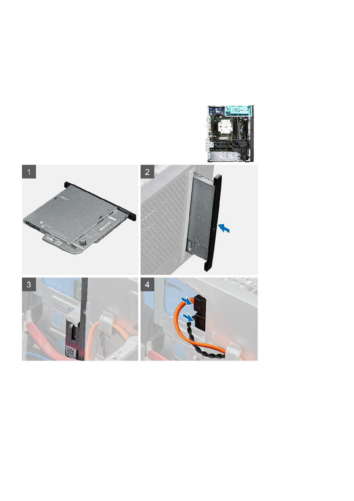 The following images indicate the location of the slim ODD and provide a visual representation of the installation procedure.