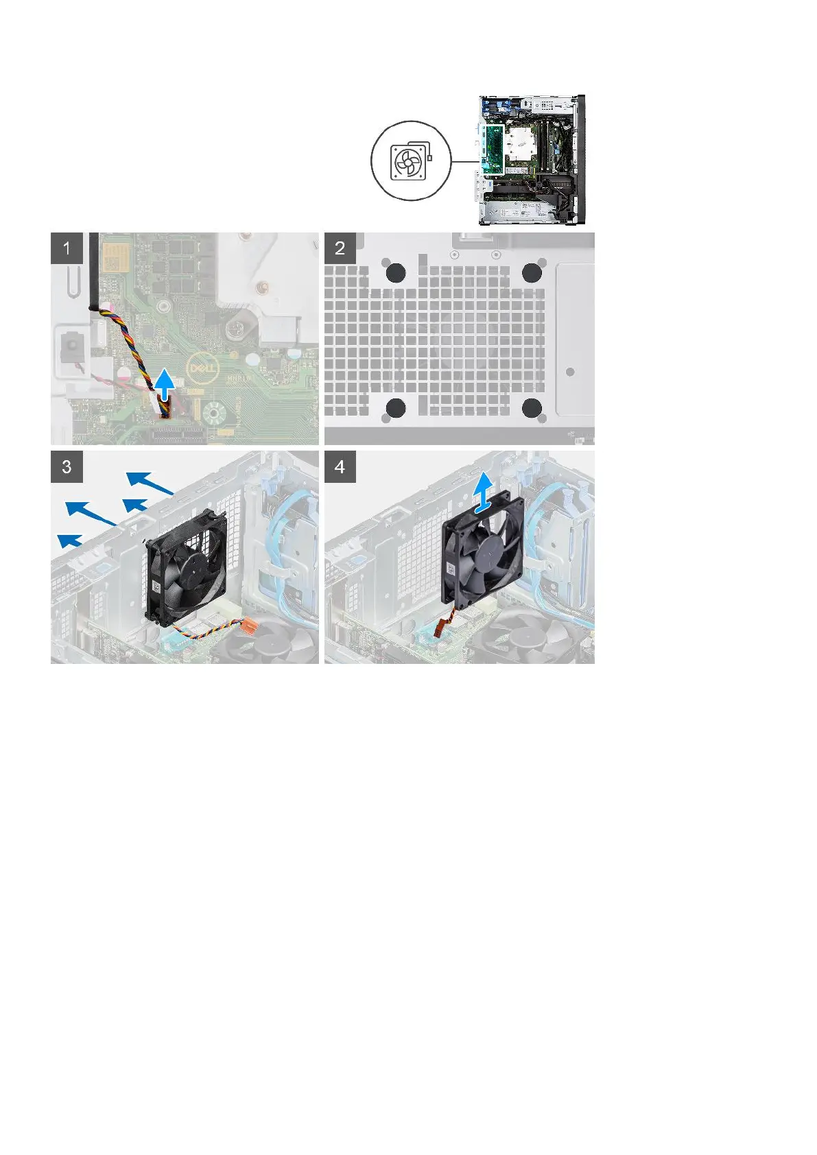 The following image indicates the location of the chassis fan and provide a visual representation of the installation procedure.