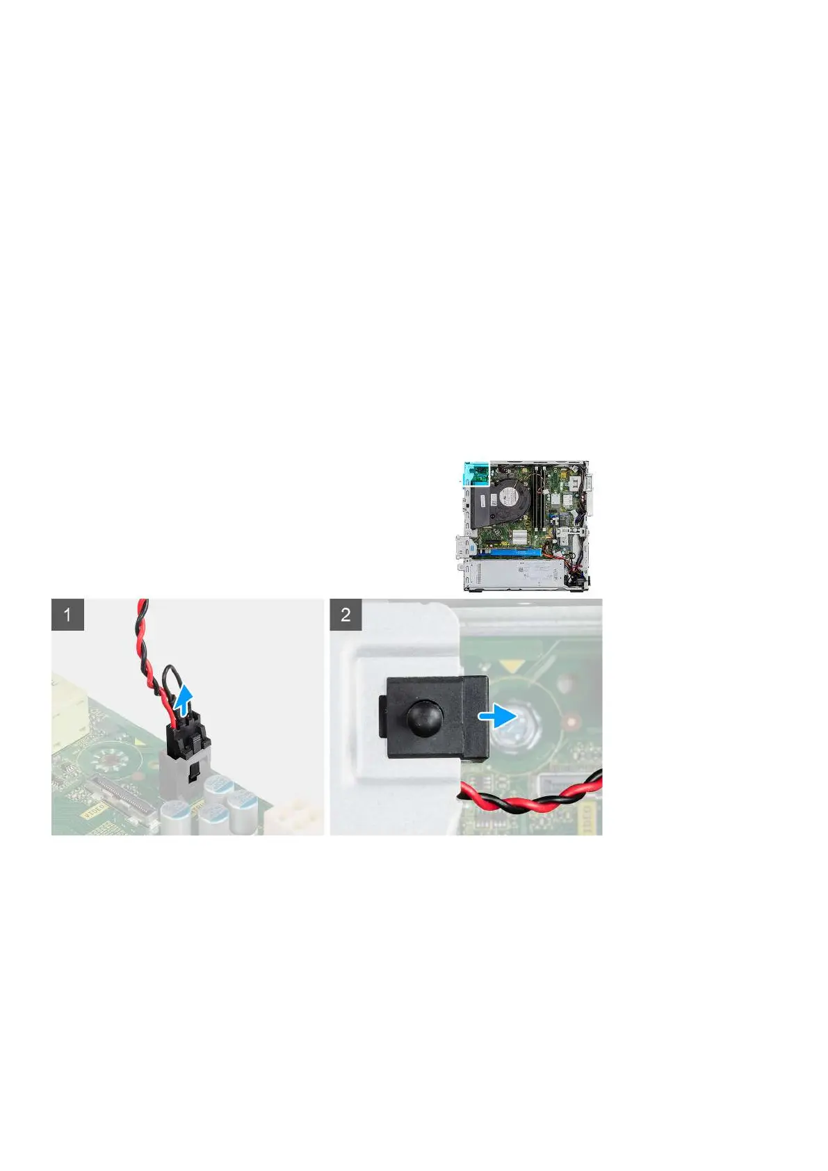 1. Press down on the latch on the intrusion switch cable and disconnect it from the connector on the system board.