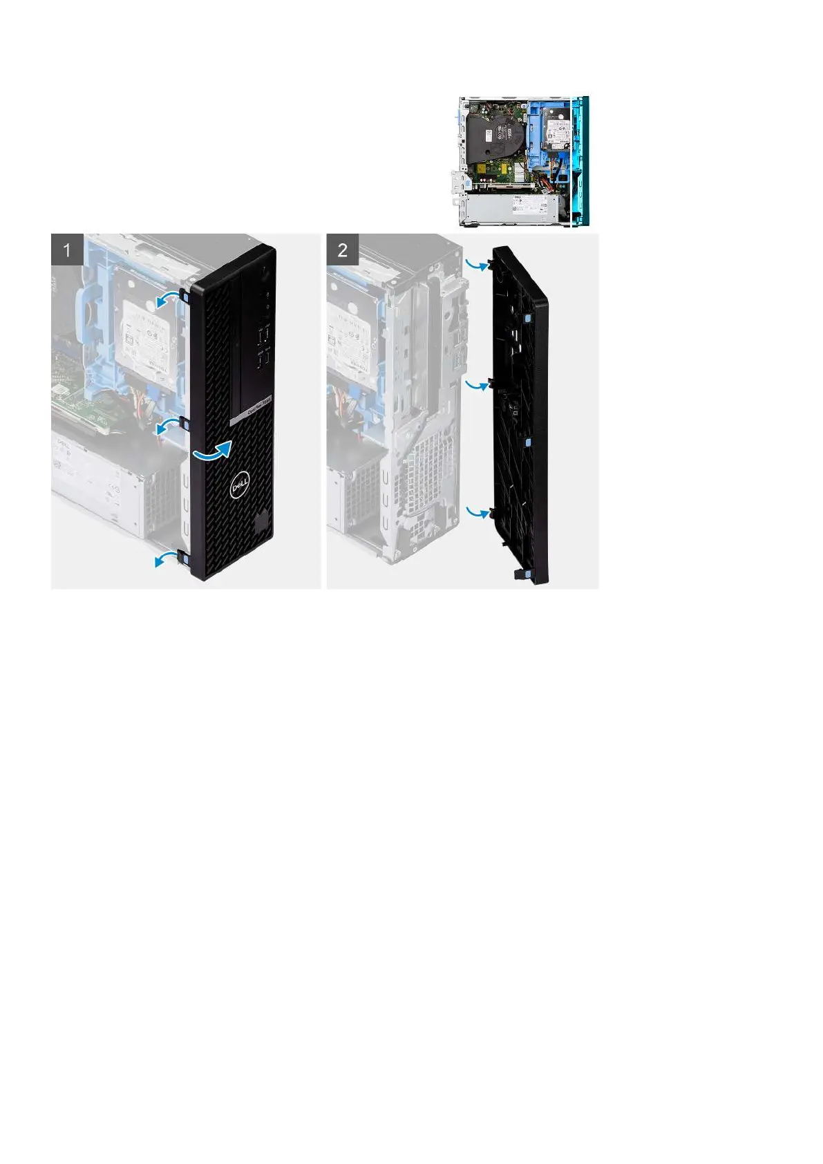 The following image indicates the location of the front bezel and provides a visual representation of the installation procedure.